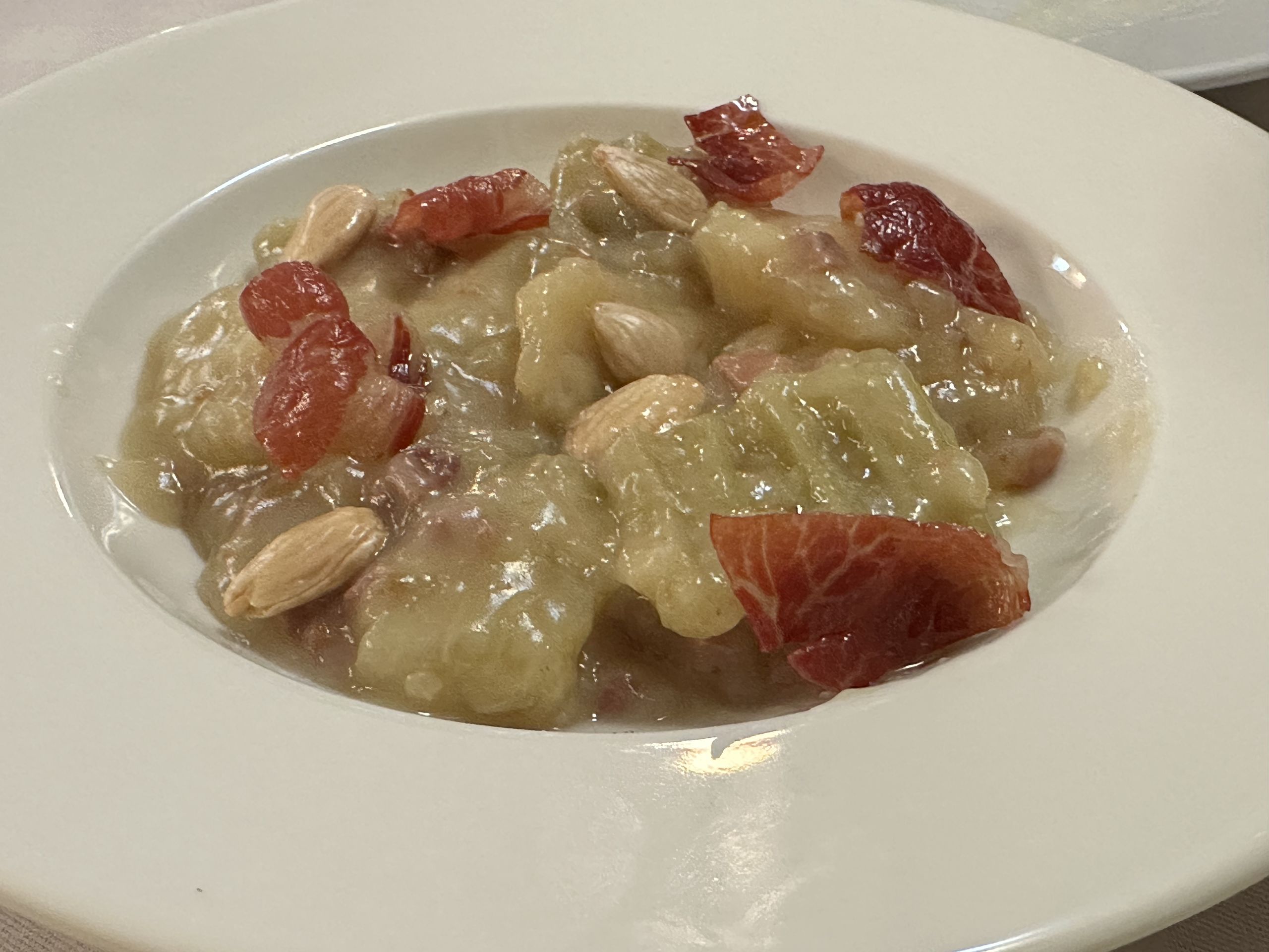 Espectacular cardo con jamón, con una salsa que es una especie de pilpil propia del jugo de la verdura y de la grasa que suelta el ibñerico.