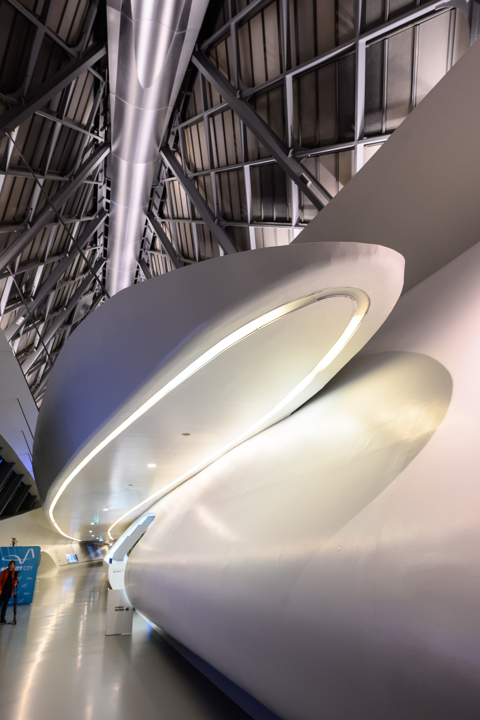 Mobility City es uno de esos casos de un museo en el que el continente es tan importante como el contenido, en este caso el espectacular edificio-puente de Zaha Hadid impresiona desde el primer momento.