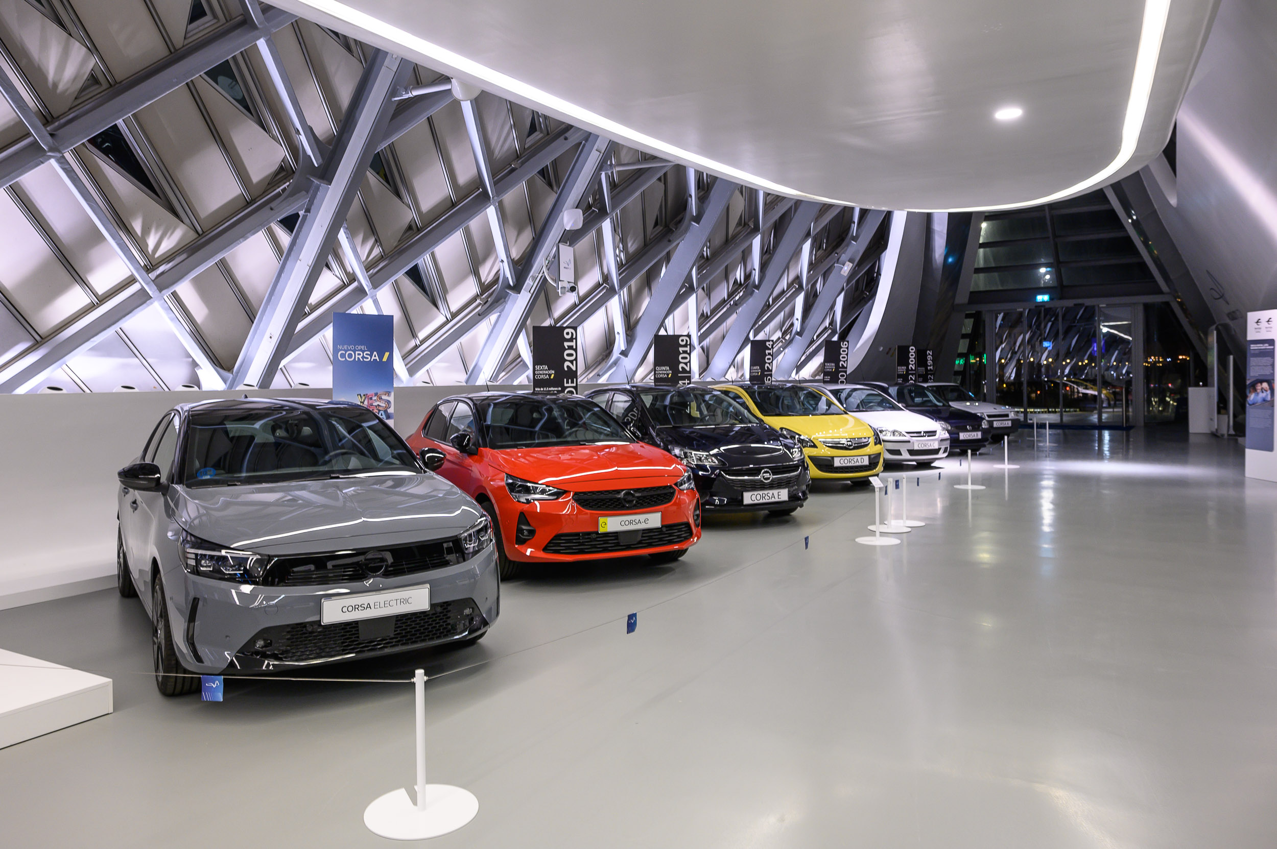 El Mobility mira sobre todo al futuro, como hemos dicho, pero también recuerda el pasado, por ejemplo con esta exposición en la que se mostraban todos las generaciones del Opel Corsa que se han fabricado en la factoría de Zaragoza de la empresa, a menos de 30 kilómetros del museo.