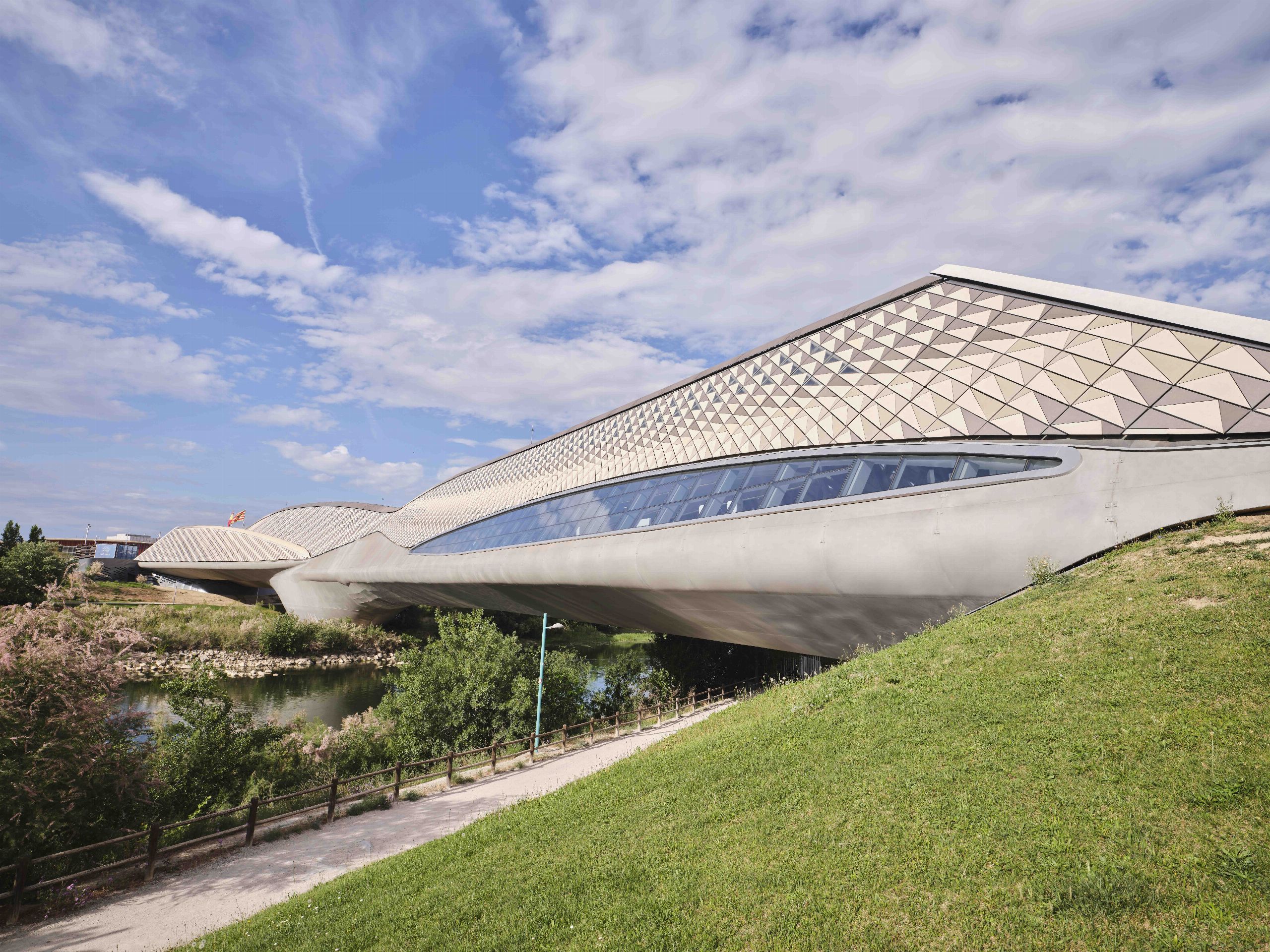 El Mobility City de Zaragoza está en el puente que la conocida arquitecta Zaha Hadid proyectó para la Expo de 2008. Se trata de una obra muy singular que es al mismo tiempo una pasarela sobre el Ebro y un edificio de cuatro plantas capaz de albergar todo un museo.