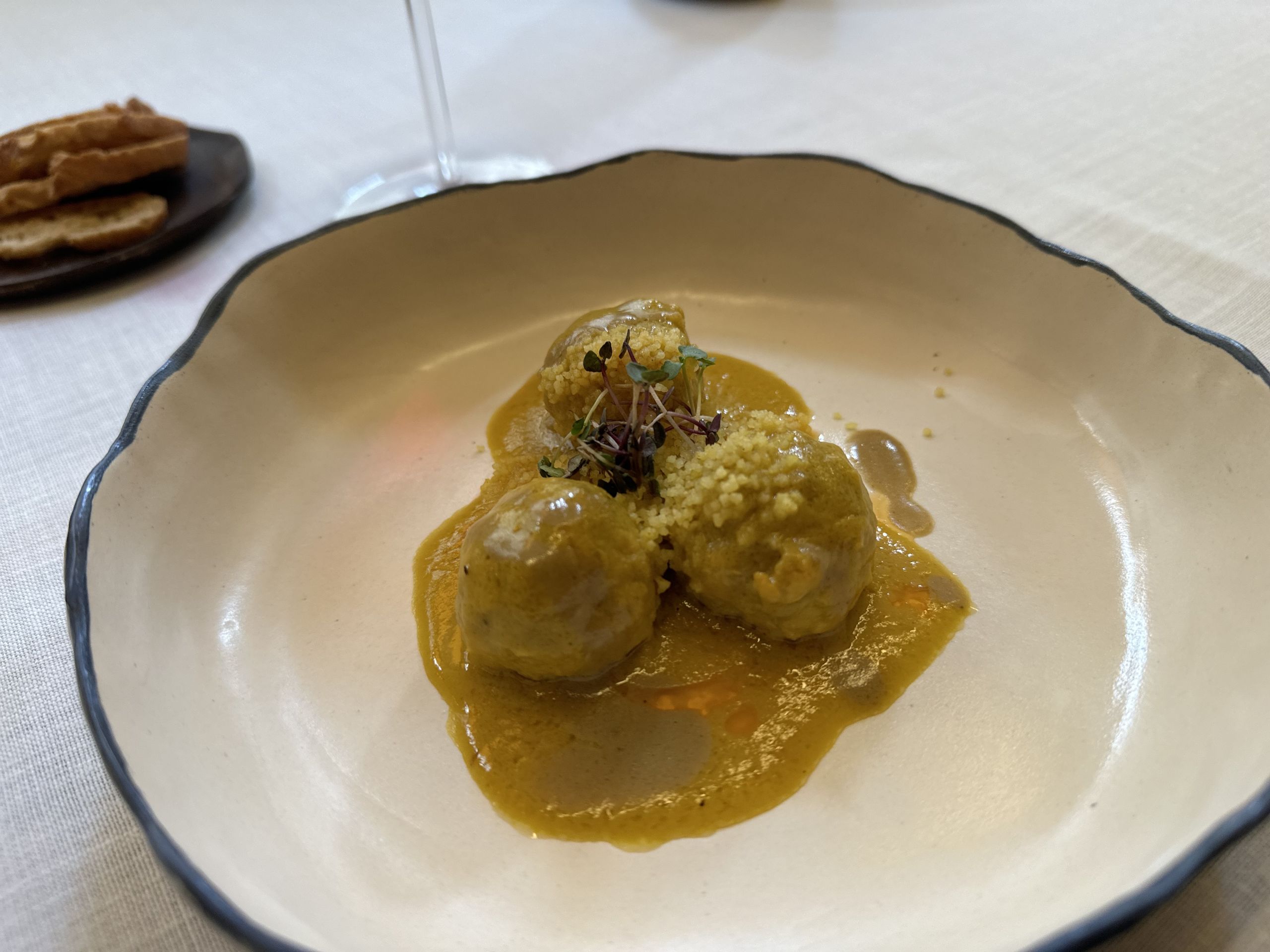 Las albóndigas de pularda con foie, pepitoria y cous cous de coliflor.