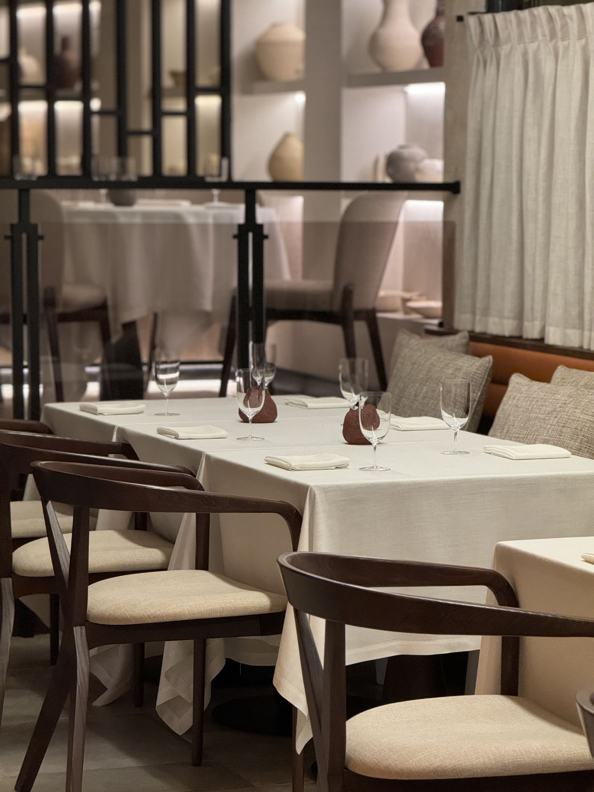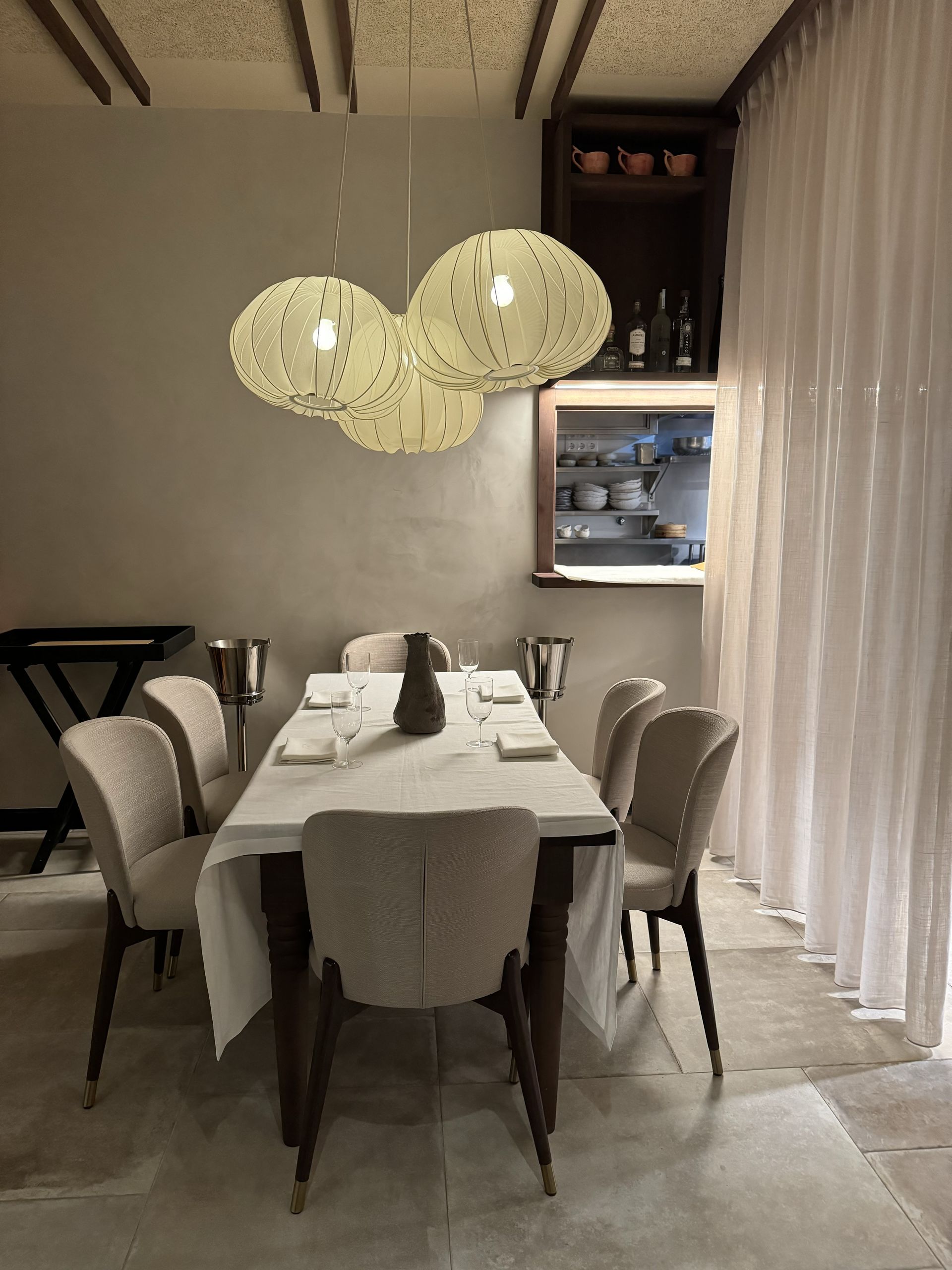 Materiales naturales como la madera también contribuyen a ese ambiente relajado en el que el comensal puede disfrutar plenamente de la propuesta gastronómica, "para que se disfrute sin prisas, donde la experiencia es pausada", como dice Madrigal.
