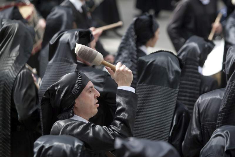 La procesión del Santo Entierro de Zaragoza, en la que participan todas las cofradías y hermandades de la ciudad, se celebra la noche de Viernes Santo y tiene la mayor concentración de tambores y bombos de toda España. Es una cita inigualable en la que saetas y jotas se mezclan con el sonido de bombos, tambores, matracas y carracas.