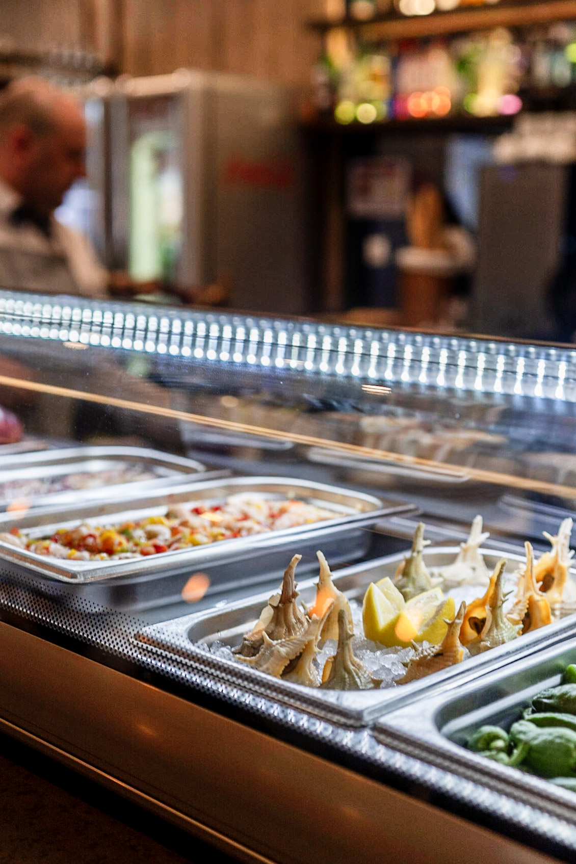 Una animada barra en la que podrás picar y tomar el aperitivo es lo primero que te encuentras al entrar en El Espigón de Madrid.