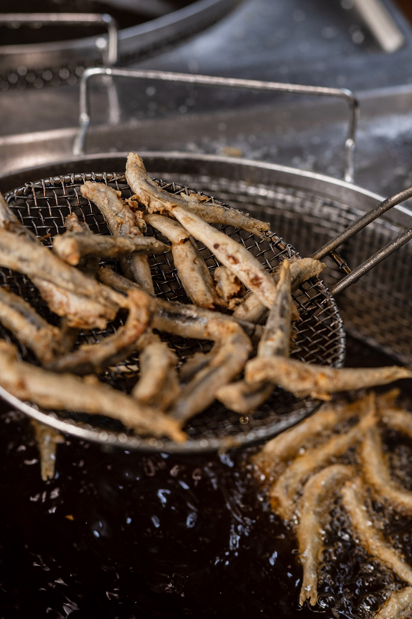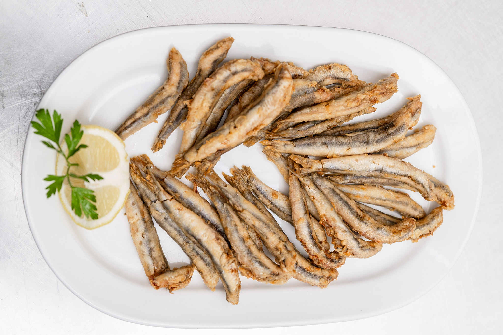 Fritura de boquerones victorianos y salmonetitos de Motril, para comerte hasta la cabeza y no estar preoucupado de las siempre molestas espinas de este pescaíto tan delicioso.