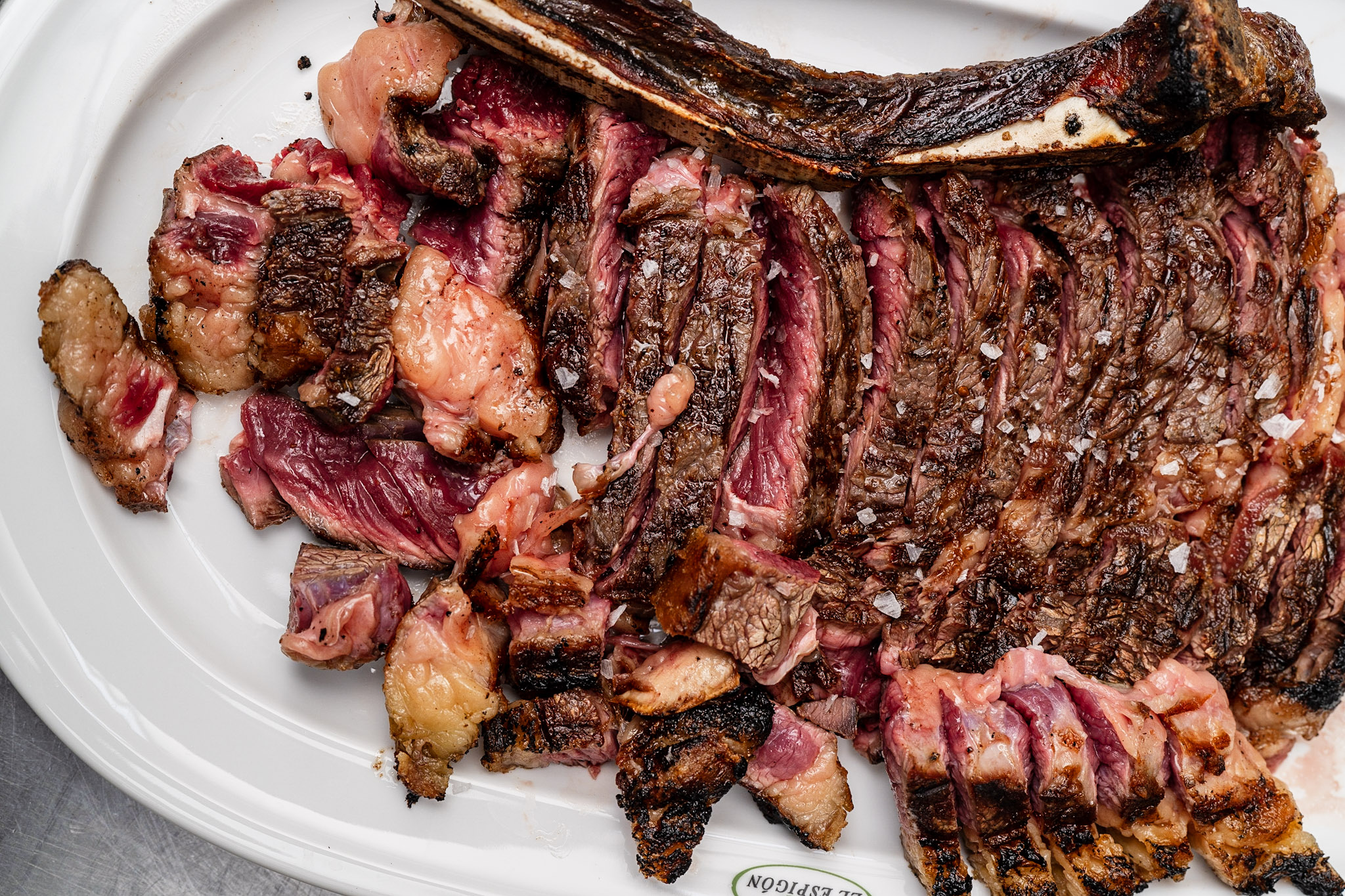 La carne también tiene su hueco en El Espigón, como ejemplo, este magnífico chuletón de vaca añeja.