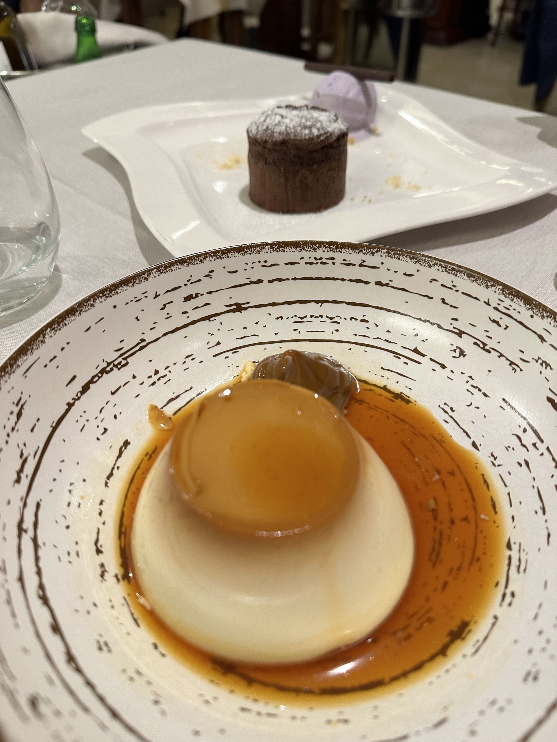 Los postres, todos ellos caseros, como el flan de mascarpone o la bomba de chocolate con helado de violeta.