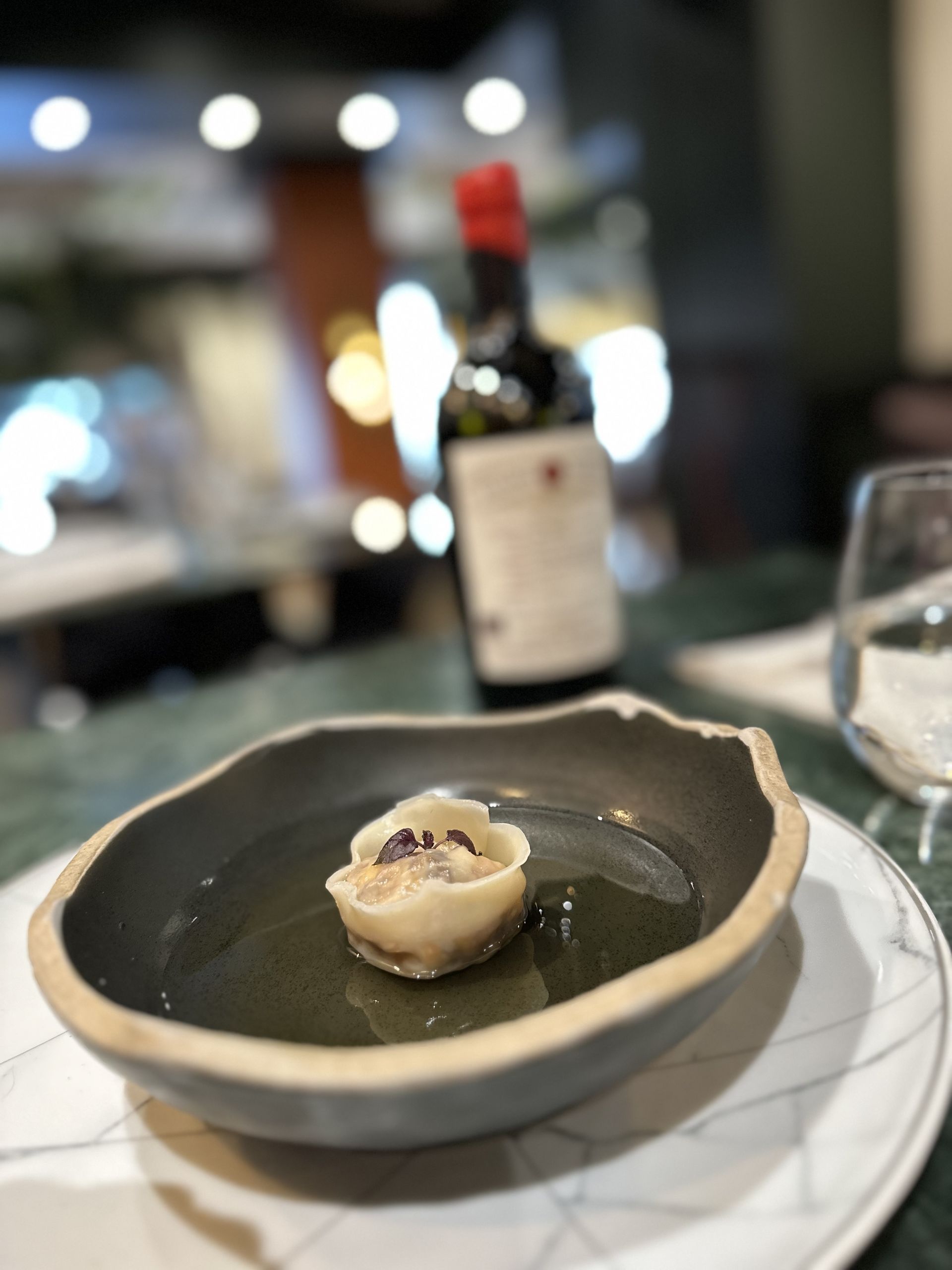 Platos que vienen de maravilla con el mal tiempo, unos deliciosos dumplings de ropa vieja con caldo filtrado de cocido para el que preparan el cocido "como se ha hecho toda la vida en casa" y elaboran una ropa vieja con pimentón y cebolla. El caldo está clarificado por lo que le quitan toda la grasa pero mantiene todo el sabor.