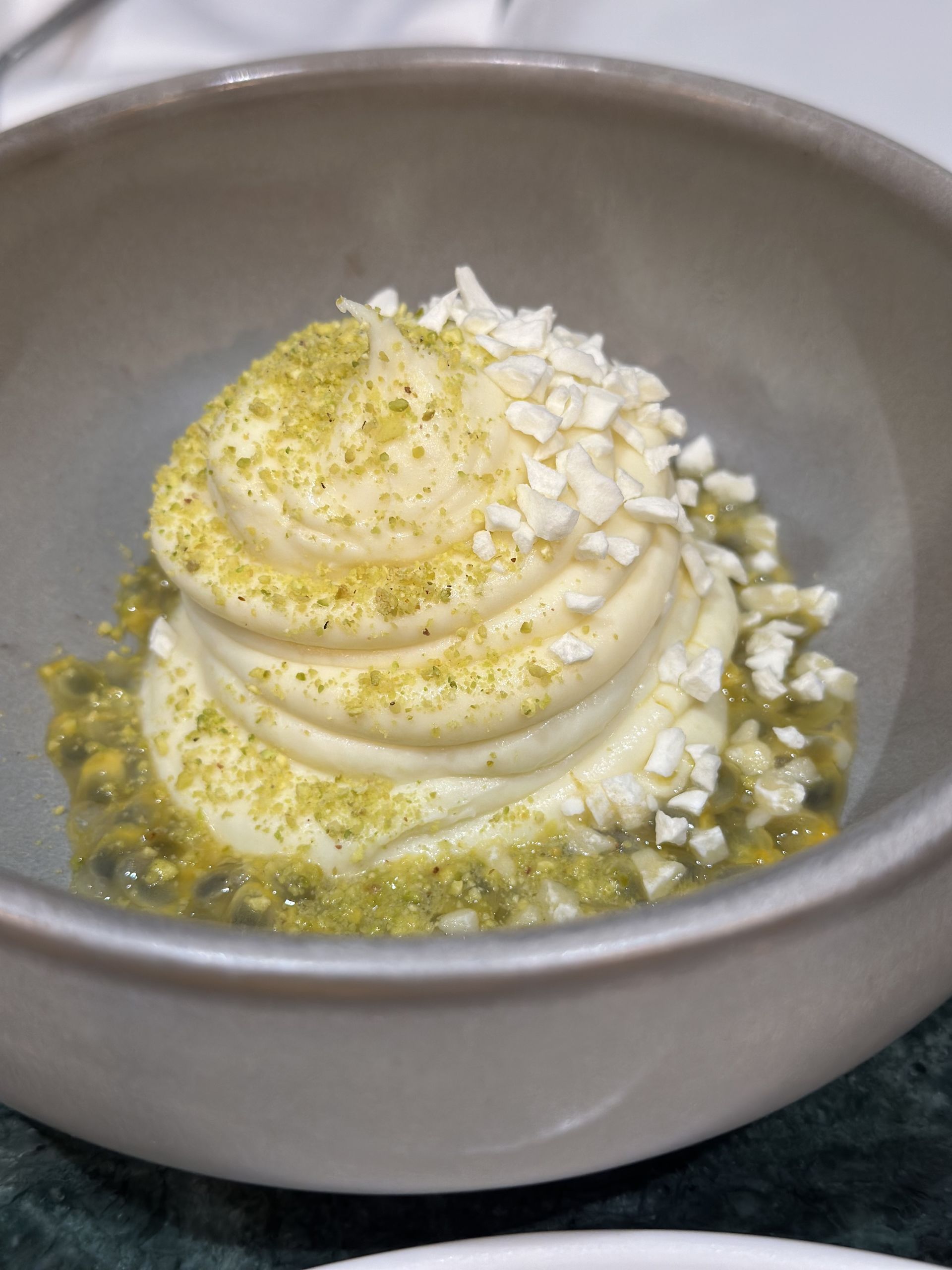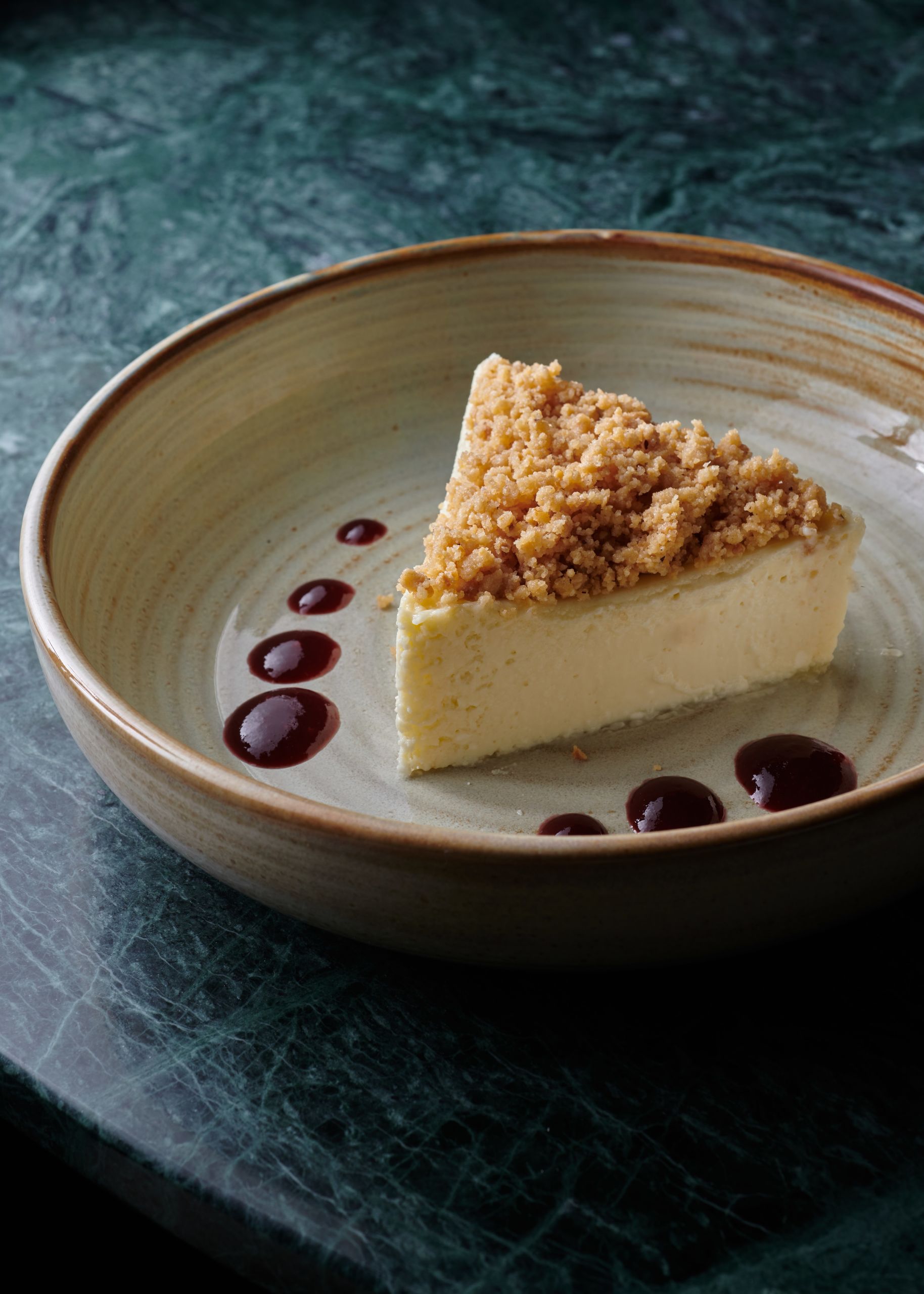 Los postres caseros cierran una carta apetecible de principio a fin. Probamos una buena tarta de queso y limia kaffir con crumble de avellana y cacahuete que se sale de la habitual cremosa de moda y la han hecho con una textura parecida a la del flan y con un sabor más cítrico al infusionar el queso con hoja de lima kaffir.