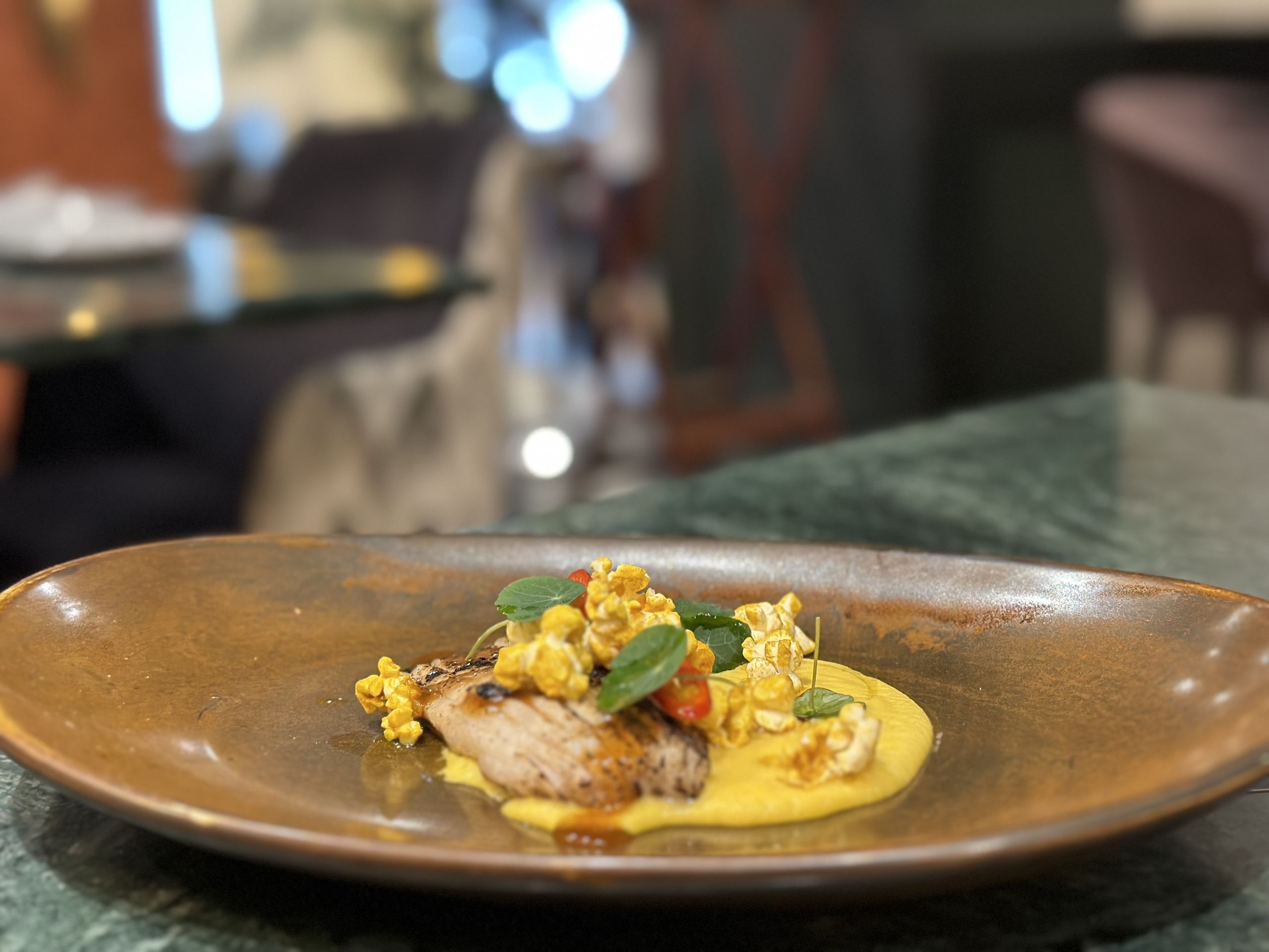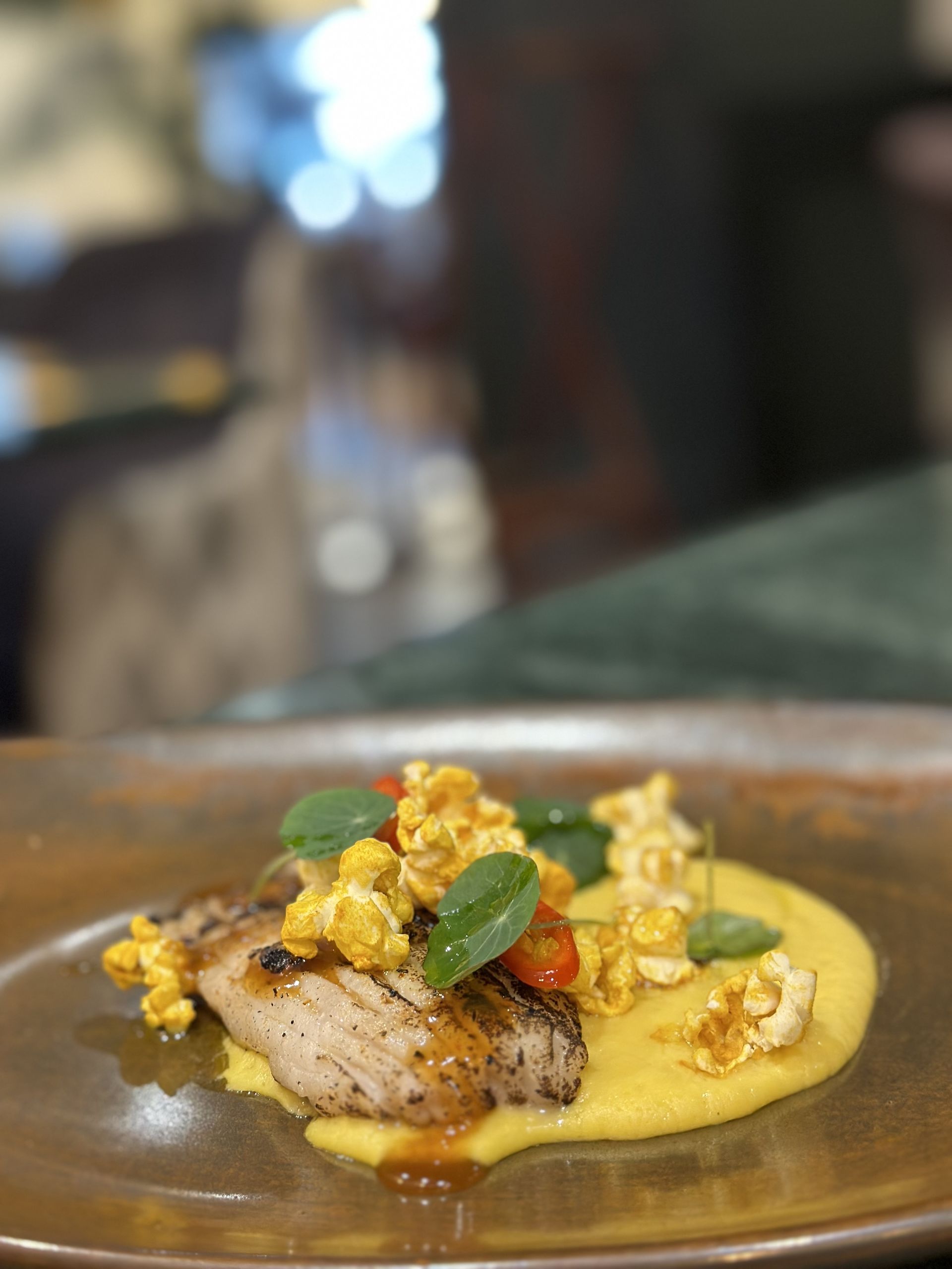 Porque su parrilla es el corazón de la propuesta gastronómica y lo comprobamos con una espectacular aleta de raya a la brasa con puré de maíz y palomitas especiadas.