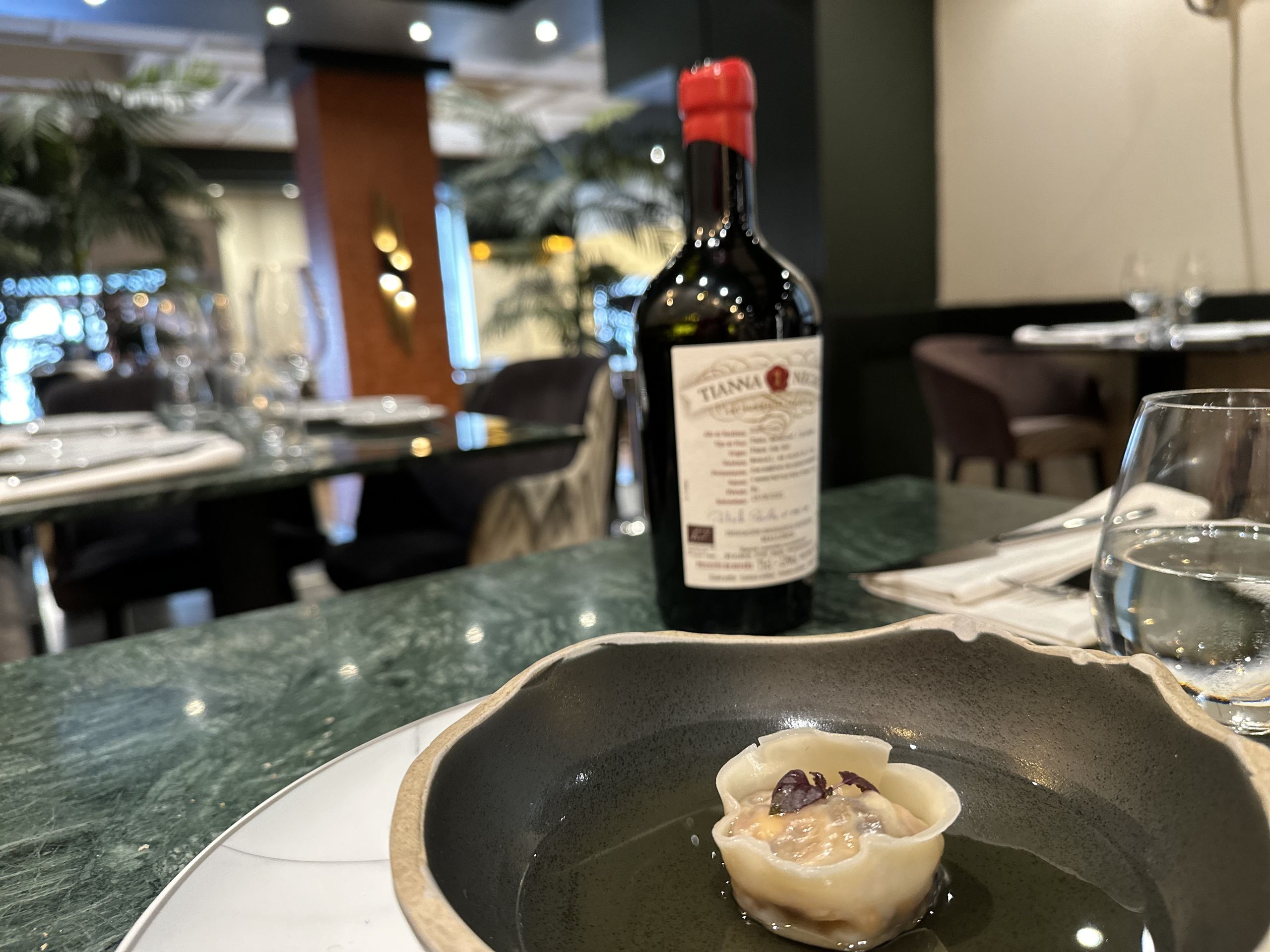 Porque es un local más grande, con varios ambientes. Una barra con taburetes, mesas altas y espacio también para mesas bajas con butacas cómodas. Un ambiente perfecto para saborear los cócteles elaborados por Álvaro Canellas. Una carta con doce creaciones de autor y otras reinterpretaciones de los clásicos elaboradas artesanalmente con siropes, cordiales, purés caseros y zumos de fruta fresca. Aunque también puedes disfrutar de la coctelería subiendo las escaleras donde te encuentras con el salón principal con mesas bajas y un par de mesas redondas ambientadas a modo de reservado y que son perfectas para tener una comida o cena más privada. Allí te encuentras con la bodega, que cuenta con numerosas referencias que tratan de salirse de las habituales denominaciones de origen. Para la comida, probamos tres muy buenos vinos. Un tinto Tianna 1 Negre Callet The Sommelier Collection de Finca Son Boi, otro rosado Viñátigo Pino Valois DOP Tenerife de Bódegas Viñátigo y un tinto Guímaro DO Ribeira Sacra elaborado por el enólogo Pedro Manuel Rodríguez Pérez para Adegas Guimaros.