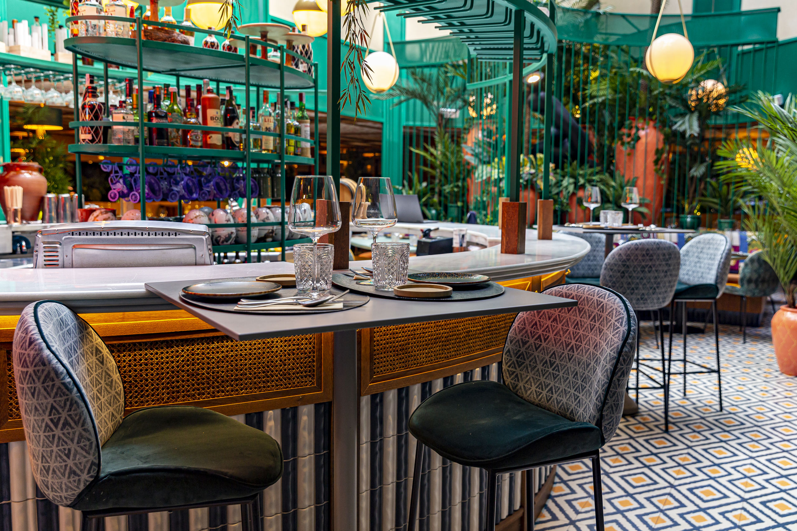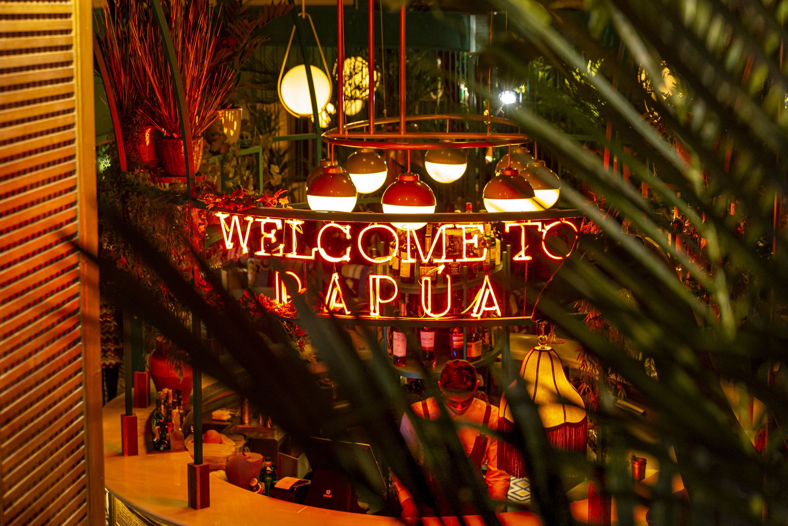 La vegetación y el neón de bienvenida te acompañarán toda la velada.