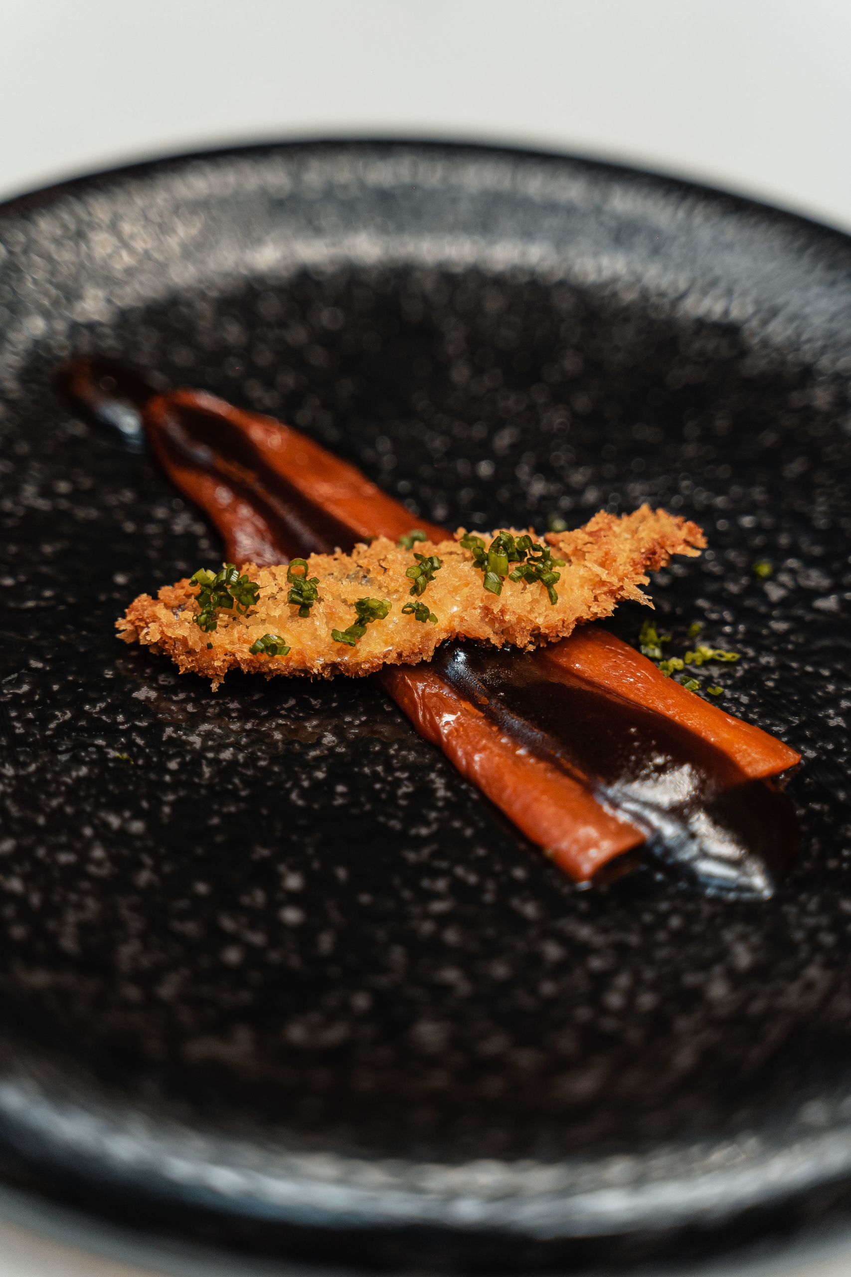 Si quieres disfriutar tienes que pedir sí o sí una de las novedades que están en la carta. Un pimiento chocolate a la brasa glaseado con sus jugos y boquerón en vinagre rebozado . Una auténtica maravilla, producto, sabor y una combinación fantástica con el vinagre del boquerón y el toque crujiente.