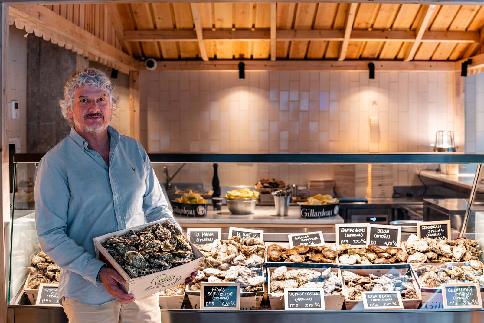 Inaz Fernández es su socio fundador y lleva toda una vida entre ostras. Desde que era pequeño en su casa vivió el misticismo que las rodeaba pero ya mayor, en un viaje a Francia, descubrió que allí las ostras eran algo popular y cotidiano. Fue en ese momento, hace casi 20 años, cuando pensó en abrir un bar de ostras para comerlas de forma informal. Y de ese pensamiento nació El Puertito de Bilbao y hace casi un año el de Madrid.