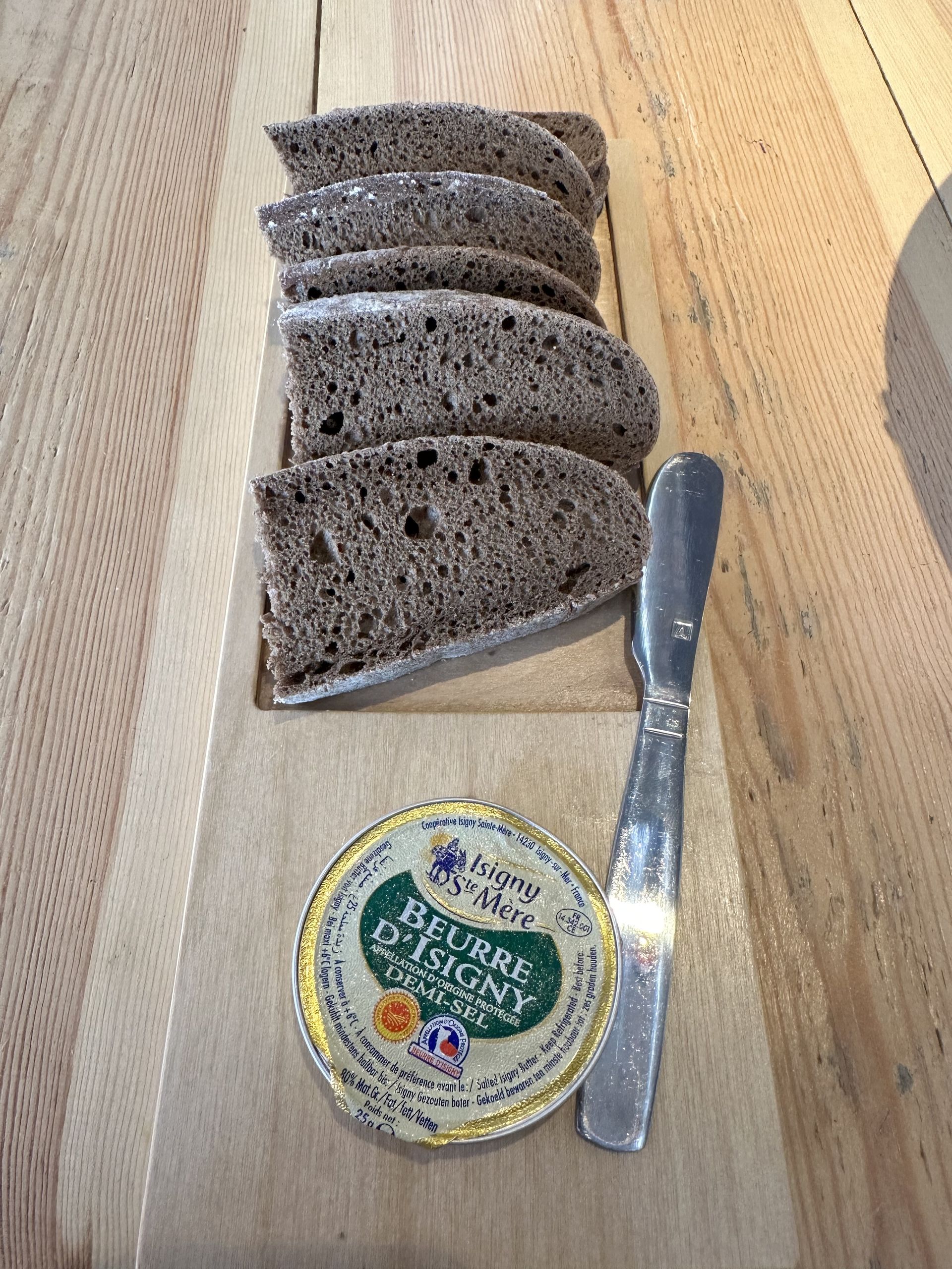 Se acompañan con una delicioso pan de centeno y exquisita mantequilla semisalada de la Bretaña, algo típico de Francia para acompañar a las ostras.