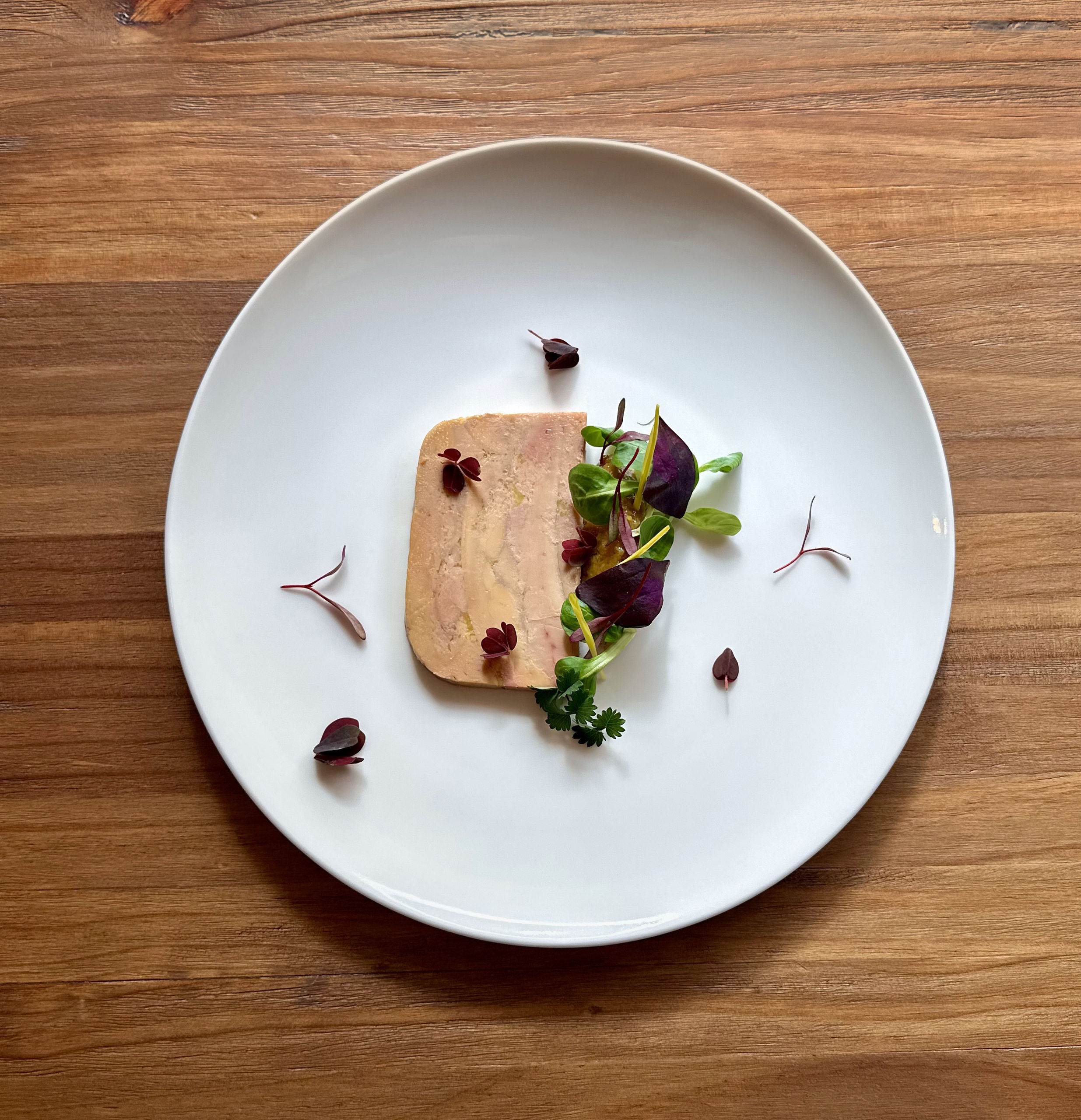 Magnífico el foie gras chutney de chalotas y uvas, escamas de sal, pan tostado.