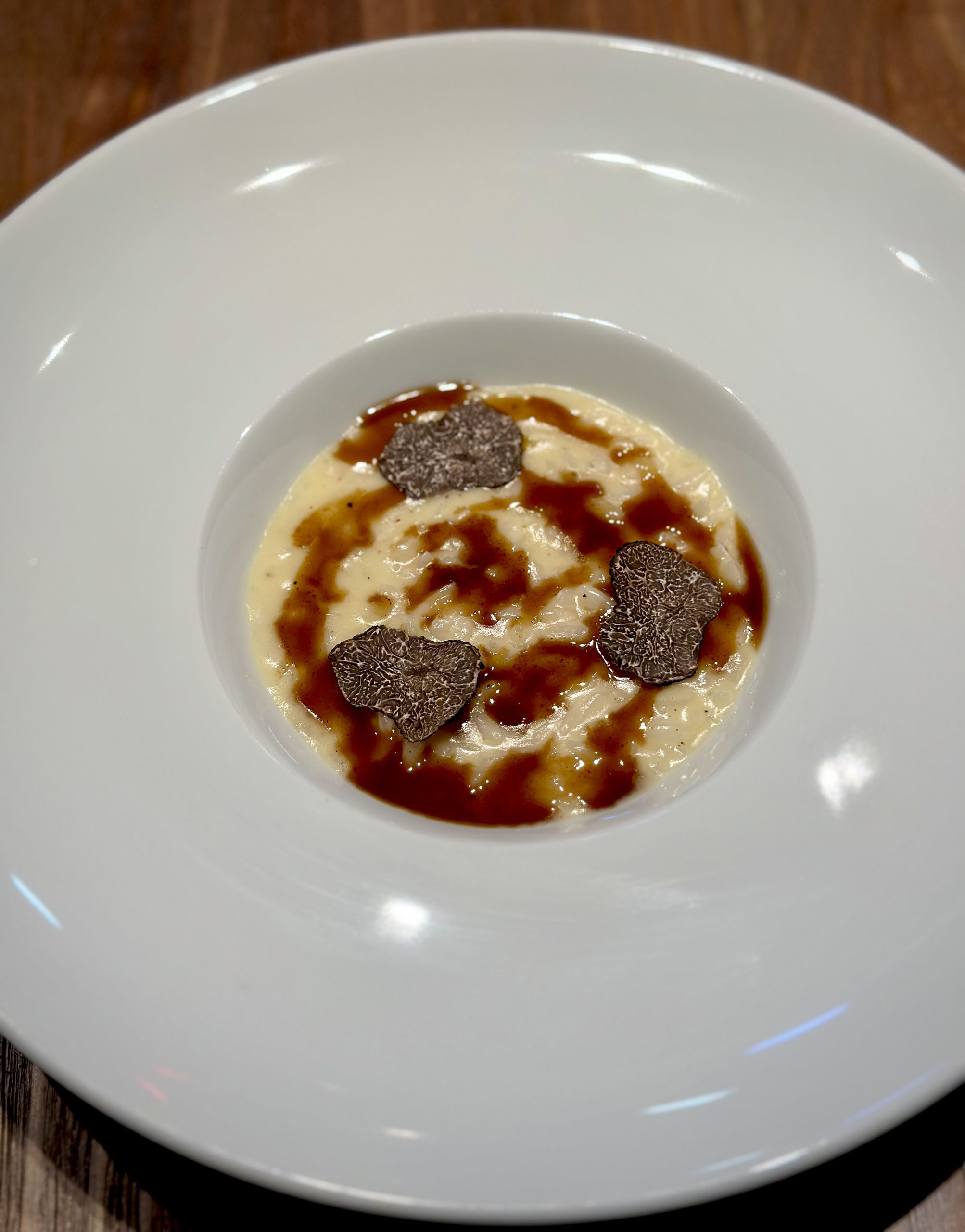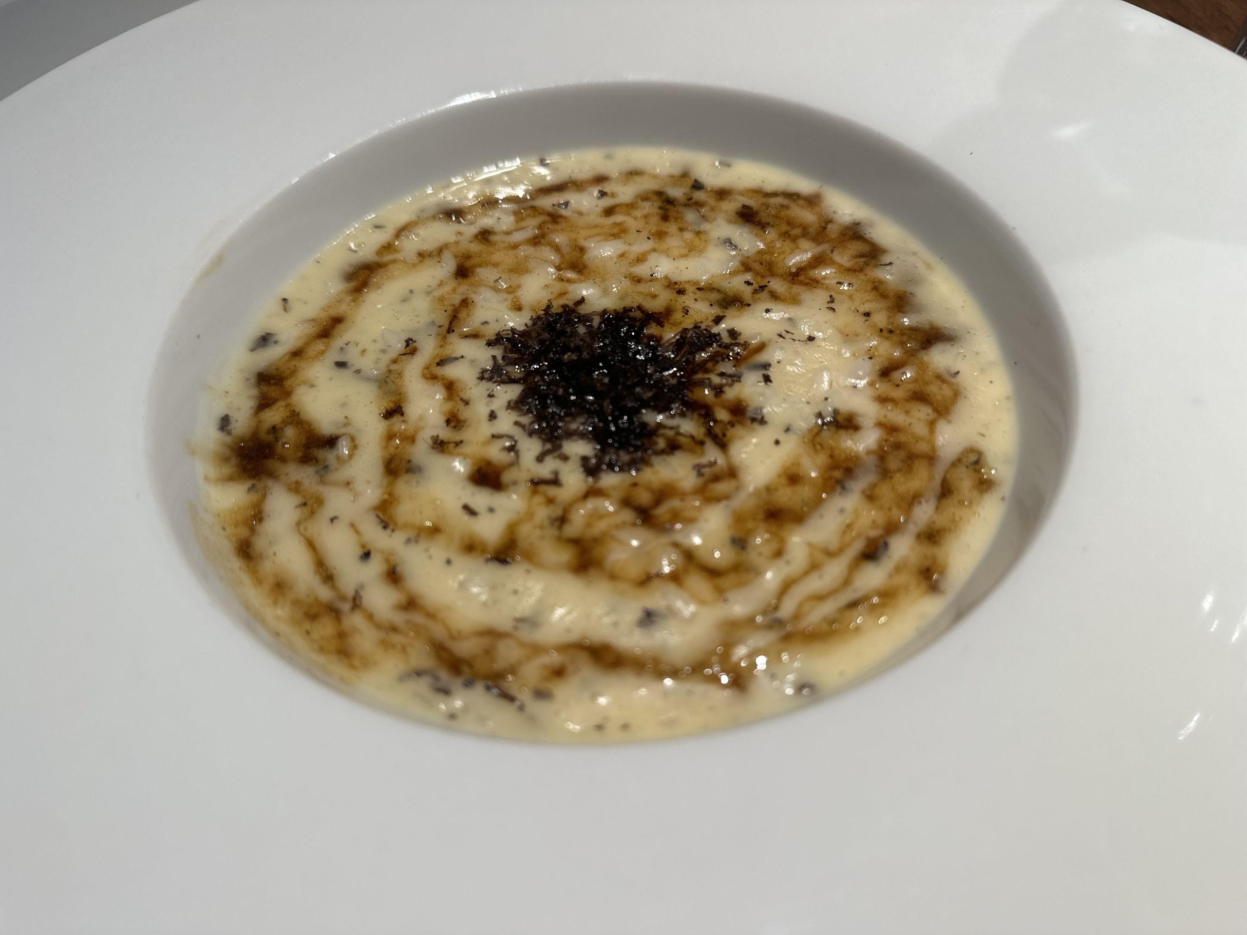 Terminamos la parte salada con un buen risotto carnaroli, con trufa de temporada y caldo de ternera.