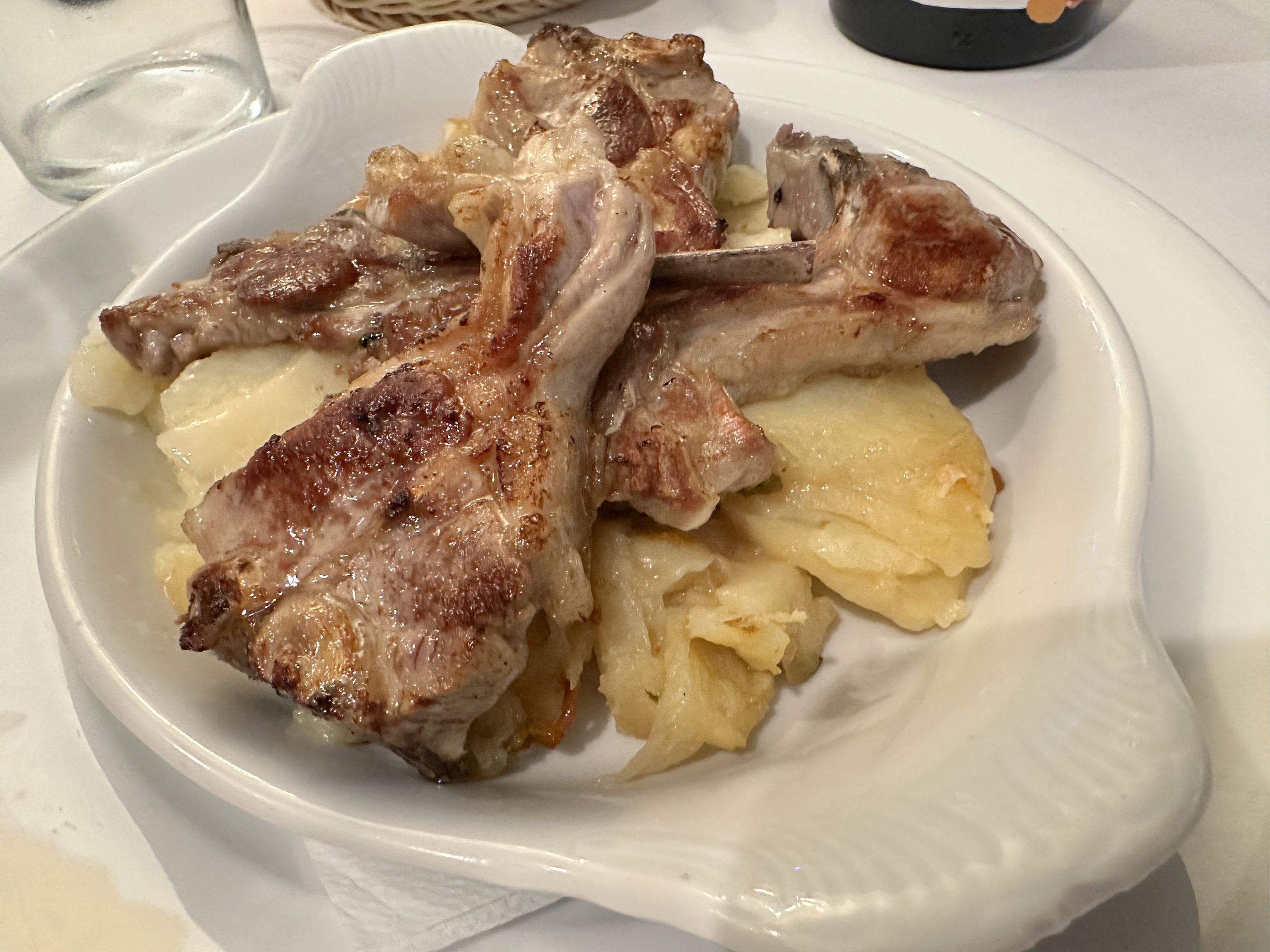 Y si lo que buscas es carne, destaca el chuletón de Norteños madurado durante 25 días que sirven a la piedra, unas piedras elaboradas por un tornero que se sirve en mesa en un hornillo individual para que cada comensal termine la carne al punto deseado. Y si no te va la carne de calidad o prefieres otras opciones, puede pedirte un cachopo o las deliciosas chuletitas de cordero lechal (25€) servidas con patatas panadera y que harán las delicias de cualquier comensal. De pescado, las elicias de merluza de pincho, el gallo a la romana o unos buenos chipirones de costa a la plancha (23€) también con su guarnición de patatas.