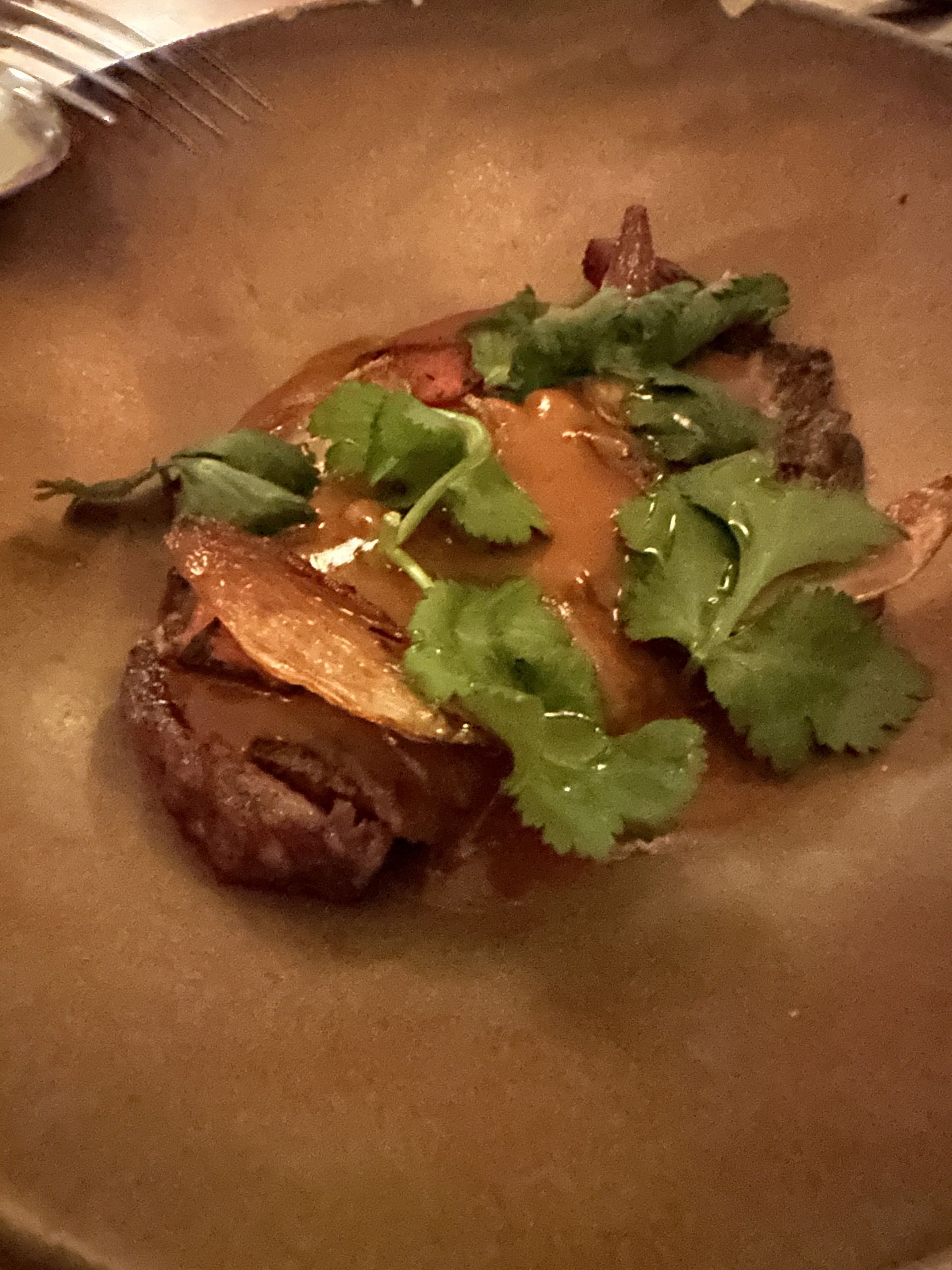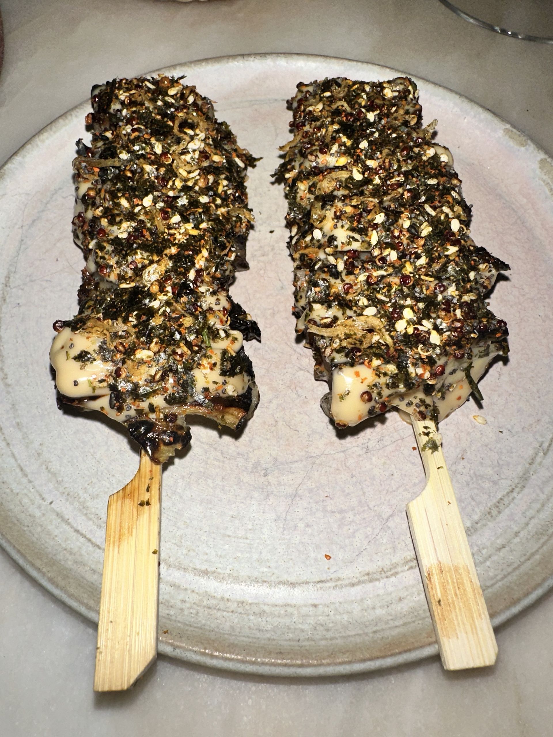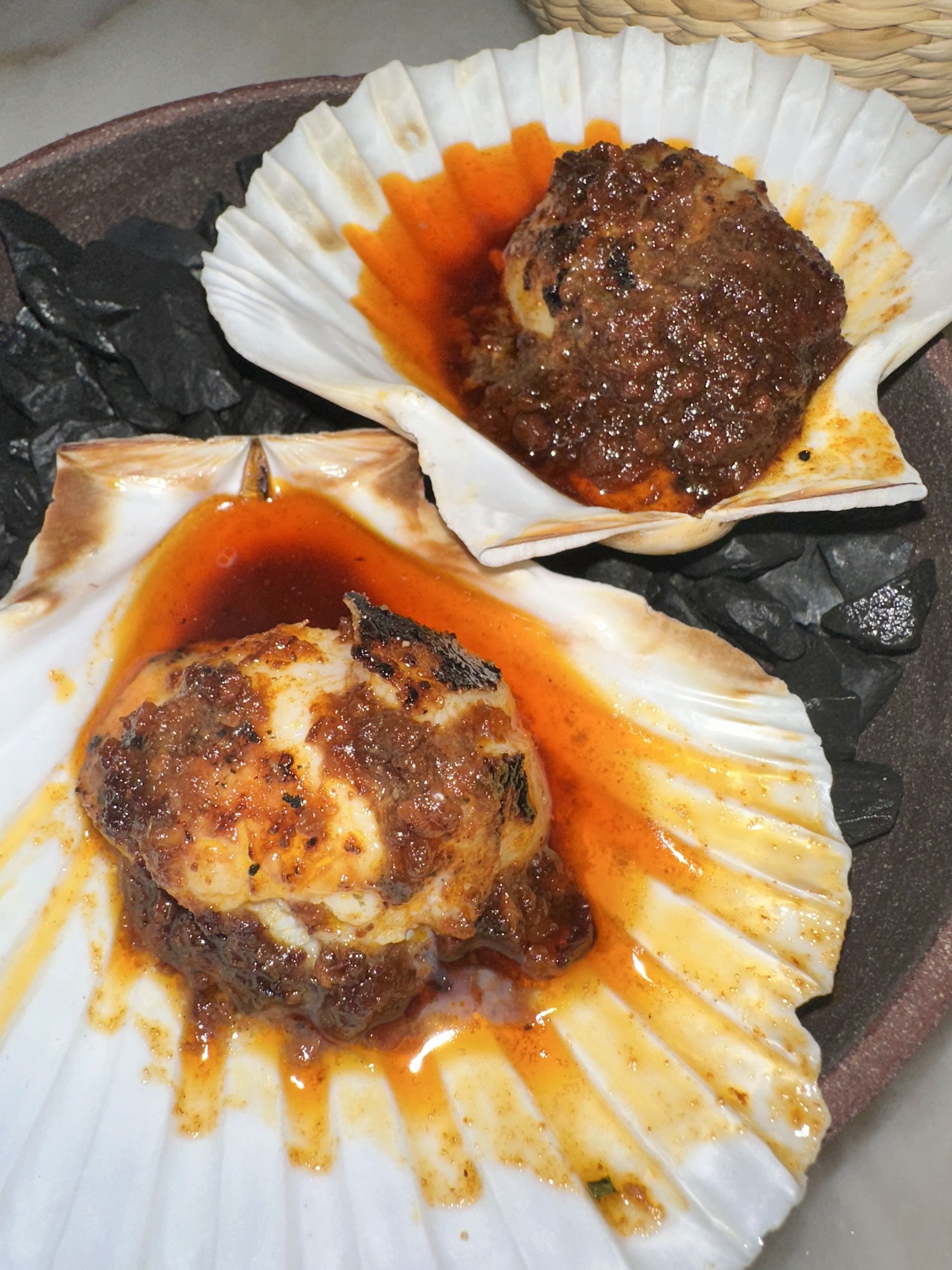 Espectacular ceviche de vieira, yuzu kosho, pitahaya y nori crujiente.