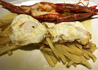 De la huerta llegan unos extraordinarios espárragos pericos con huevo escalfado y salsa holandesa (21,50€), en su punto perfecto tras pasarlos por la parrilla y perfectamente acompañados con la yema del huevo y la salsa. De los mariscos, optamos por dos sugerencias fuera de carta, unas buenas y frescas gambas rojas (19,50€ 100grs) y unas maravillosas cigalas de tronco (19,50€ 100grs), de un tamaño descomunal y con un exquisito sabor de las brasas.
