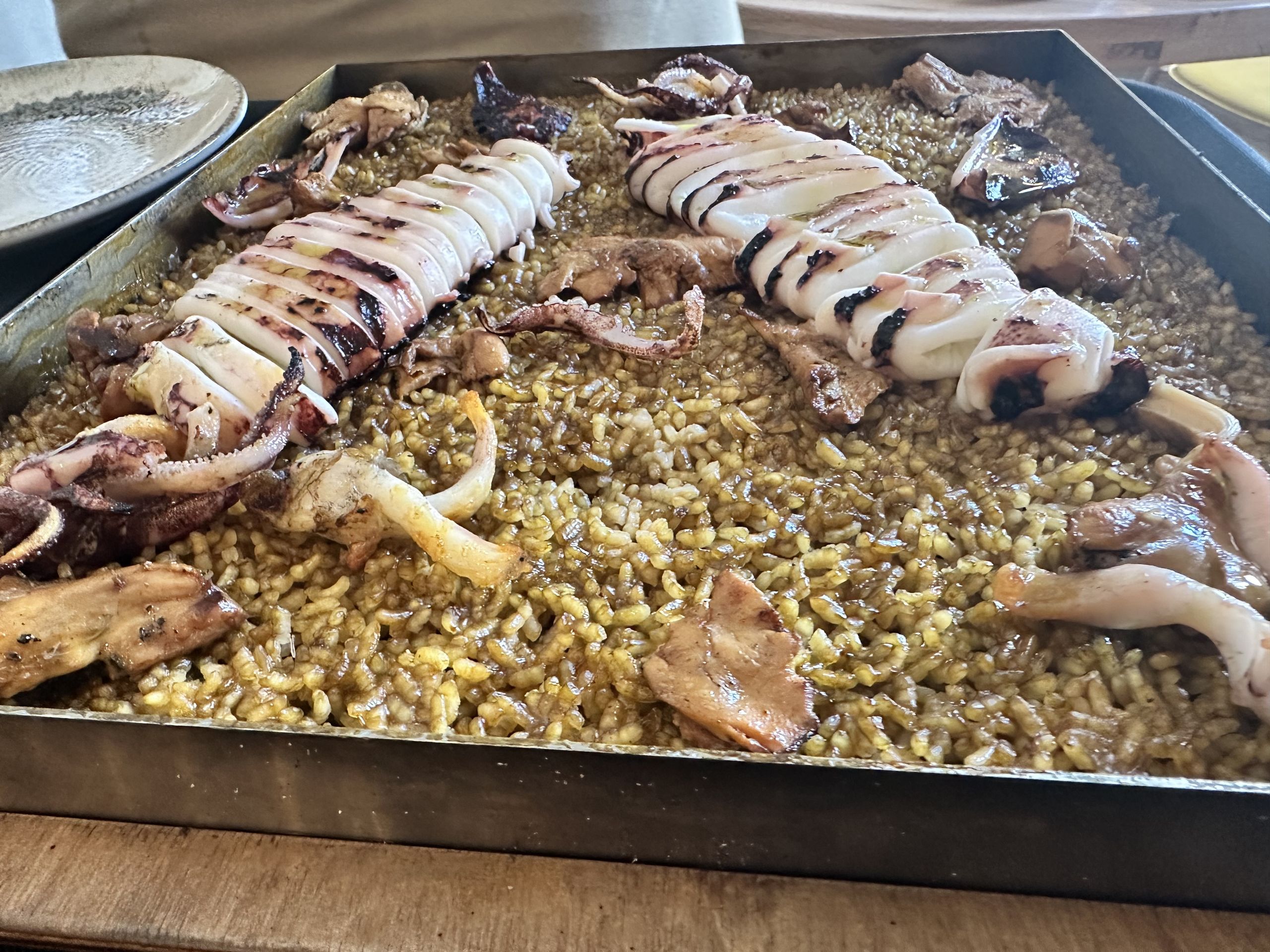 Espectacular de sabor el arroz de montaña, manos de cerdo, conejo, morcilla y setas.