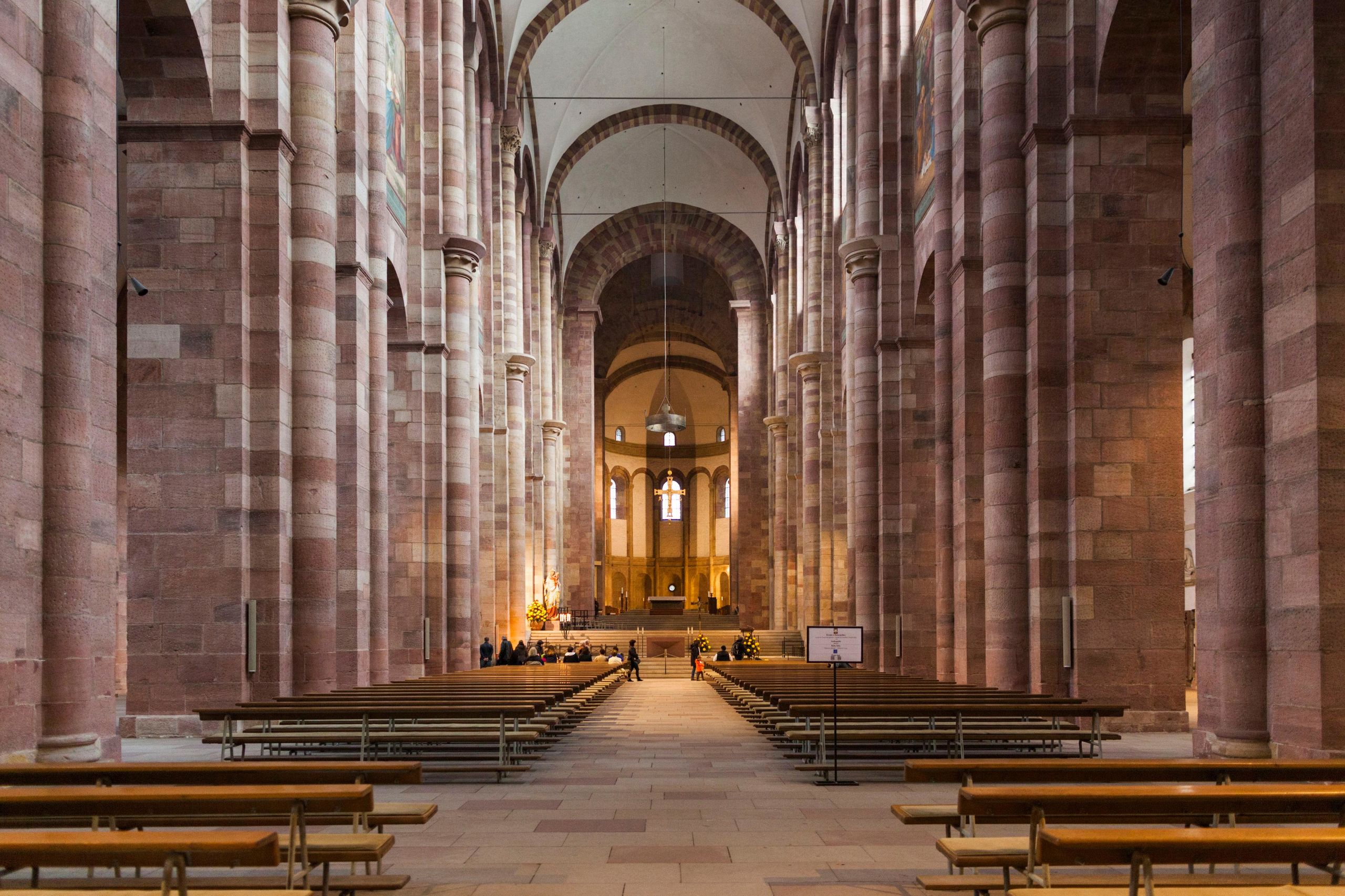 Un poco más allá está Espira, cuya catedral es nada más y nada menos que la más grande de todo el mundo en estilo románico. Además, la sensación inmensidad todavía se acrecienta más porque la decoración interior brilla por su ausencia: sólo una estatua de la Virgen junto al altar se interpone entre la mirada del visitante y el severo edificio, que es muy luminoso gracias a sus grandes ventanales, muy poco habituales en el románico.