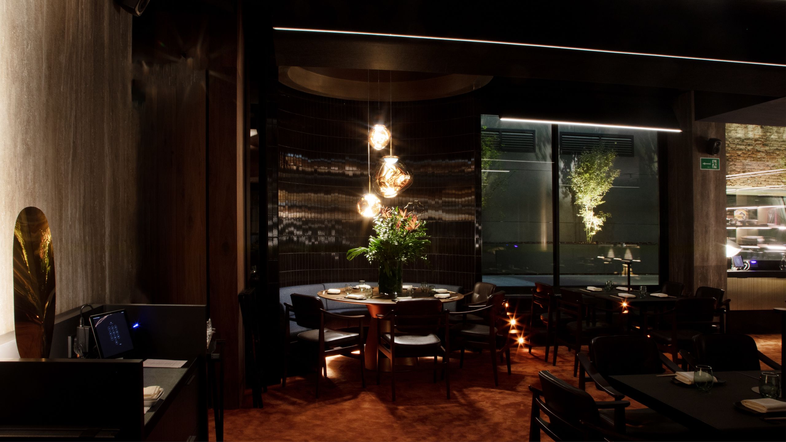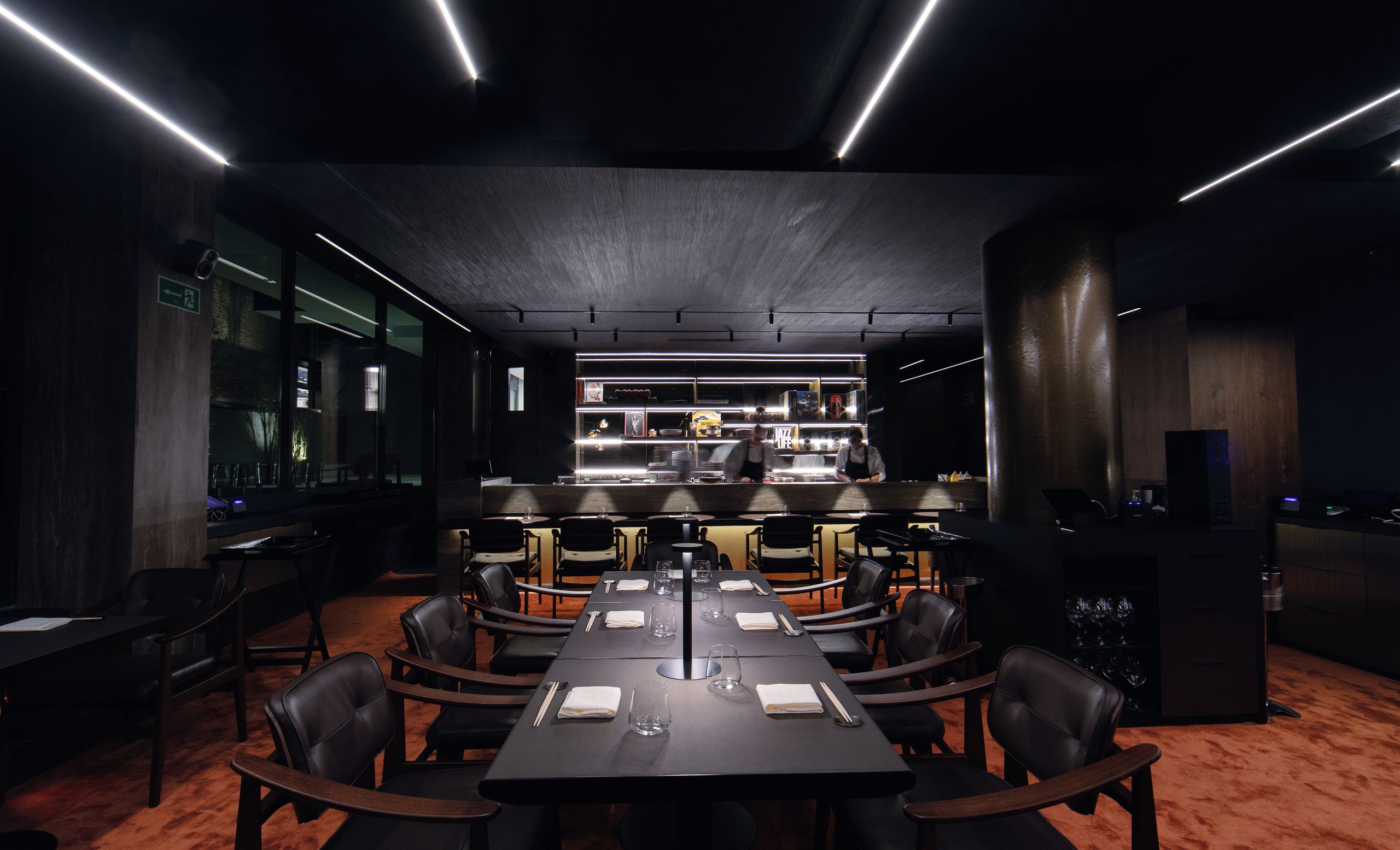 Ha conseguido crear un ambiente acogedor, sobrio y muy emocional donde predominan los tonos negros y el color caldera. El restaurante se divide en dos amplias zonas diferenciadas, cada una de ellas con su propia personalidad.