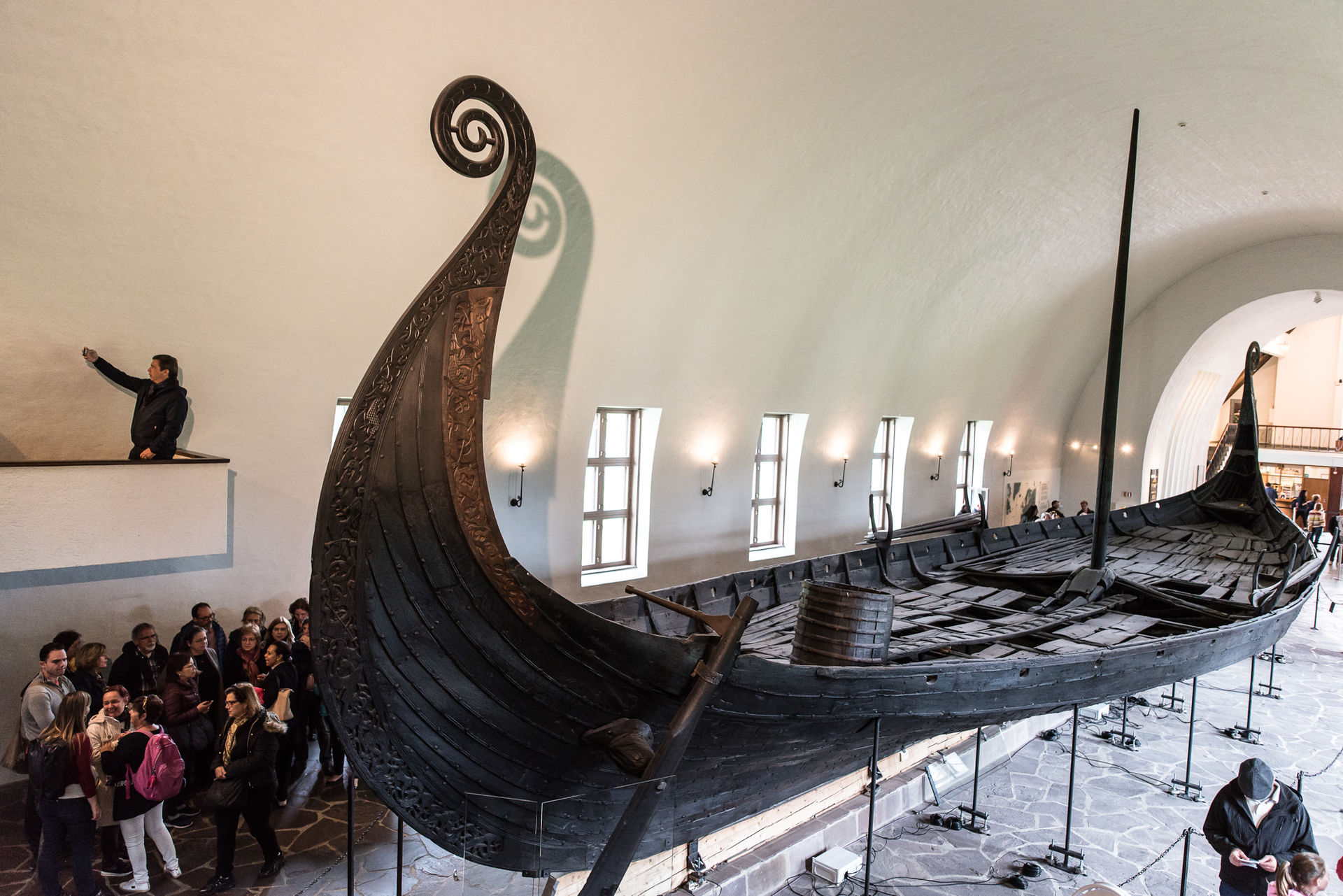 Uno de los drakars, barcos vikingos, en el interior del Museo de los barcos vikingos en Oslo. El museo de los barcos vikingos es una parada obligada, si se es un aficionado de este pueblo y de esta época. En este museo se pueden admirar tres barcos, uno de ellos sólo los restos, que fueron naves funerarias vikingas de hace más de 1000 años, además de muchos objetos cotidianos de al época vikinga. Bygdøy es una barrio de Oslo ubicado en una península occidental de la ciudad. En este lugar se mezclan los bosques y las viviendas, con los museos más importantes de la ciudad como el museo de barcos Vikingos.