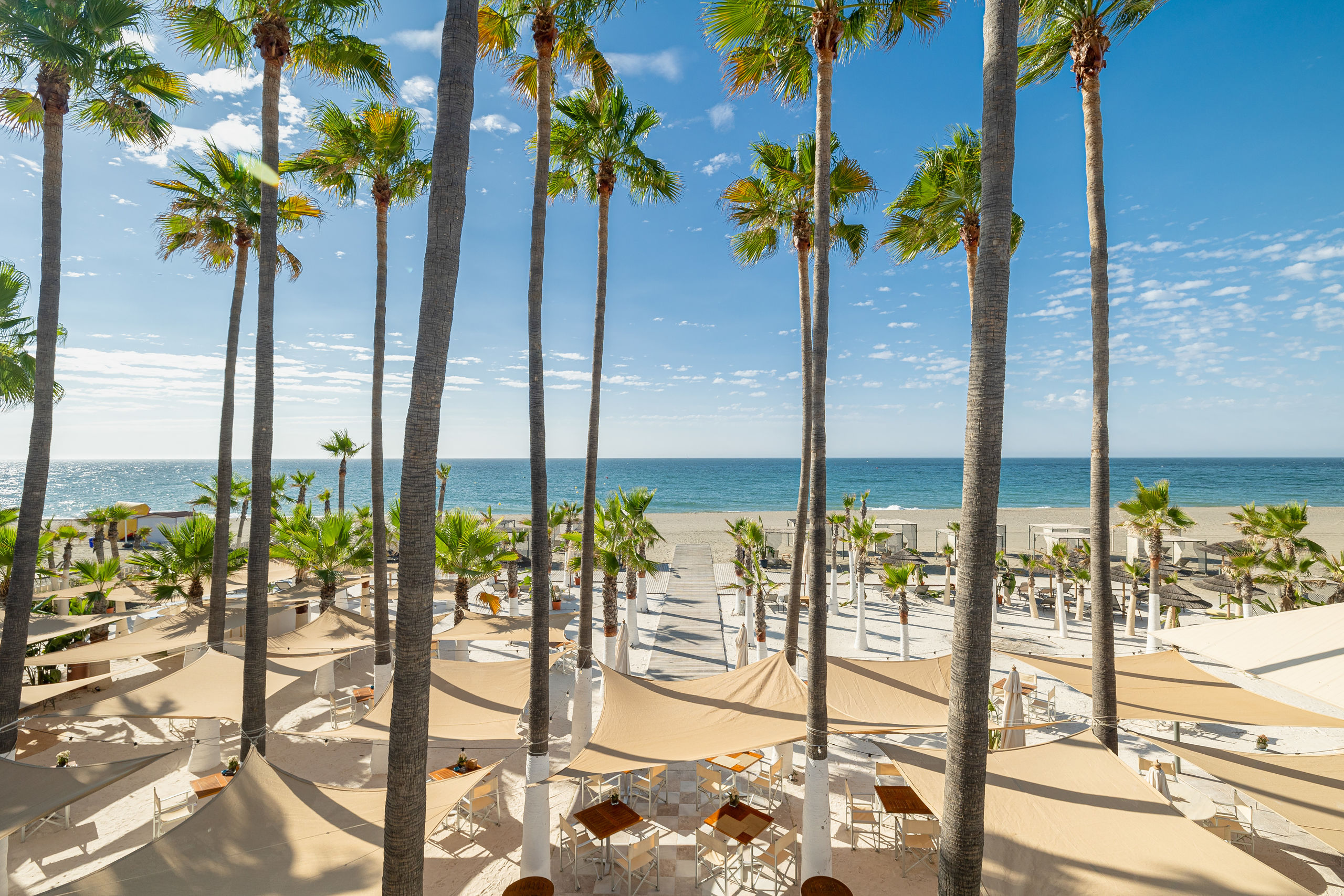 Vista aérea de restaurante beach club By the Sea de Anantara Villa Padierna.