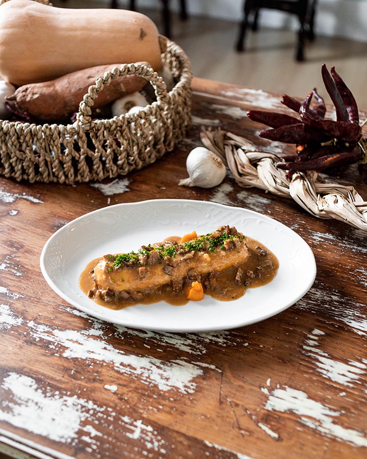 Albóndigas de conejo en salsa de verduras a la brasa y amontillado para recordar esos sabores tan característicos del sur.