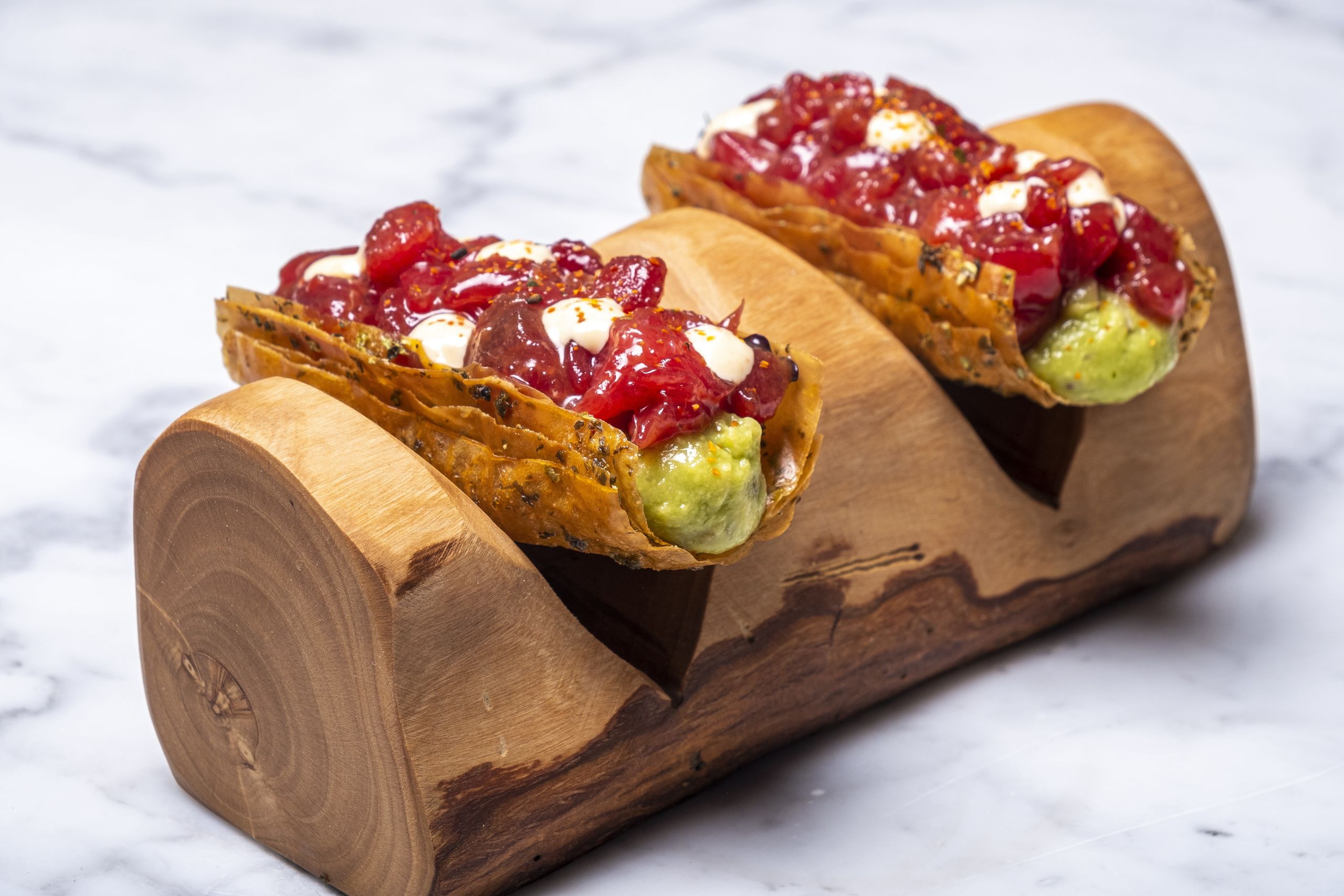 En Aquarium Port Ciutadella destaca el japo-taco de atún rojo, galardonado como Mejor Tapa de Atún Rojo de España 2023, un delicioso bocado a base de tarantelo de atún rojo con guacamole casero y shichimi tōgarashi.
