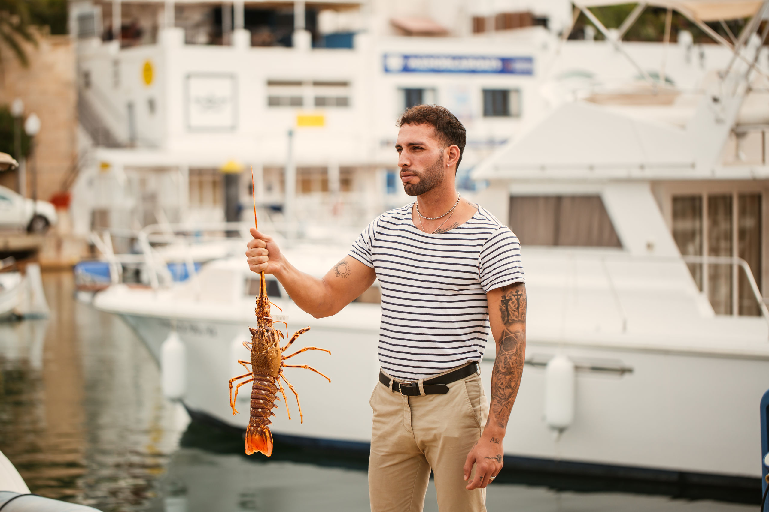 El nombre de Aquarium Port remite al vivero que tiene en su interior el restaurante y del que salen las langostas frescas que se pescan en la isla.