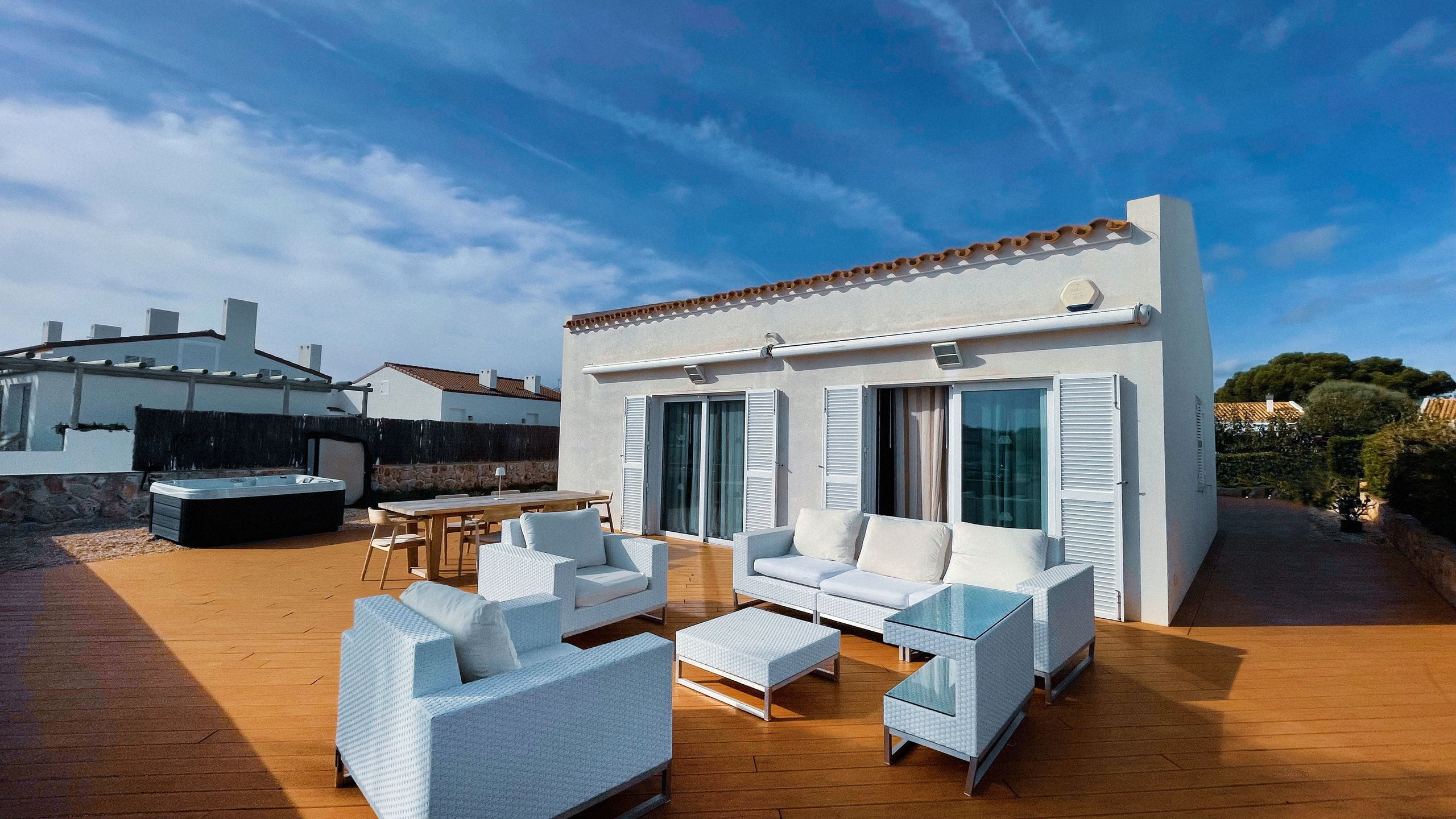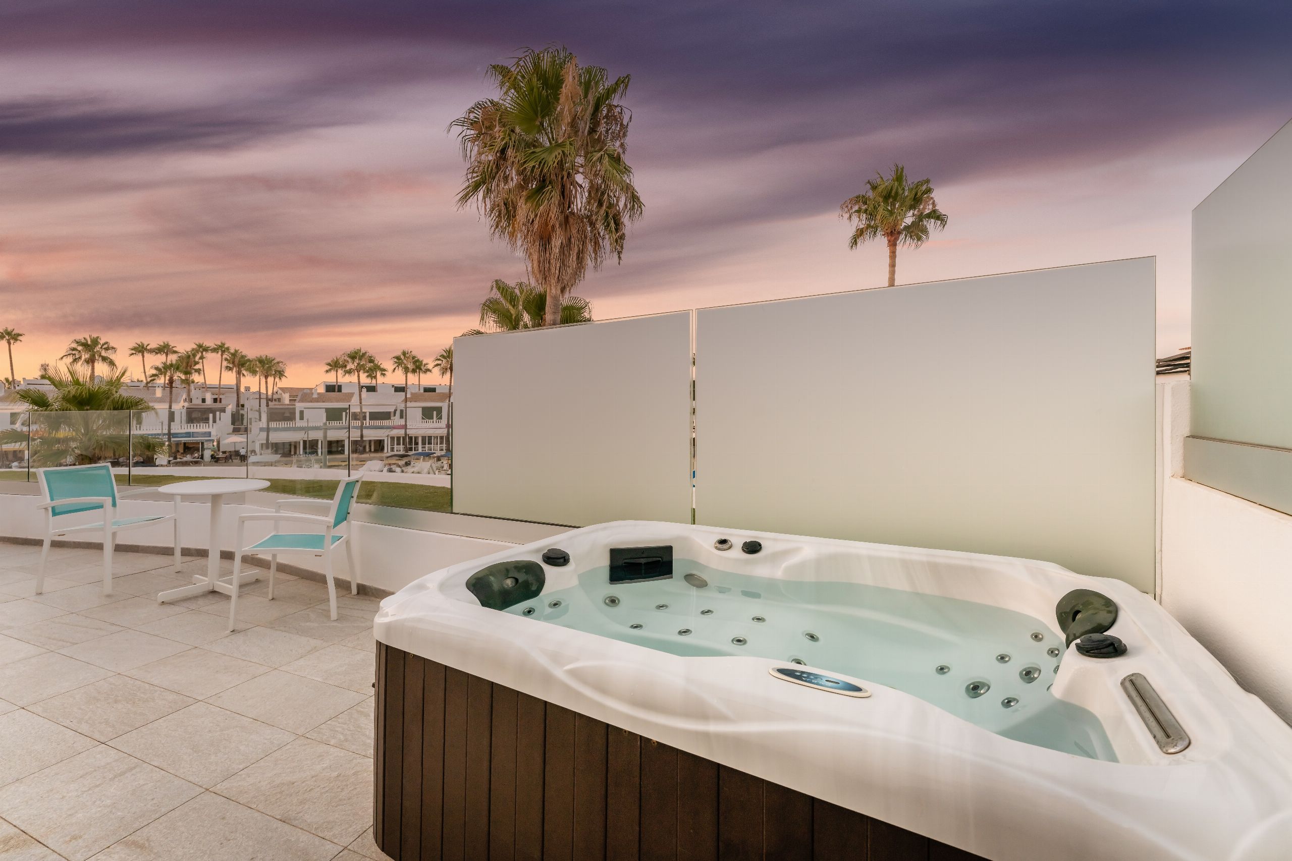 Las terrazas de las villas cuentan con todo tipo de comidades, además de jacuzzi.
