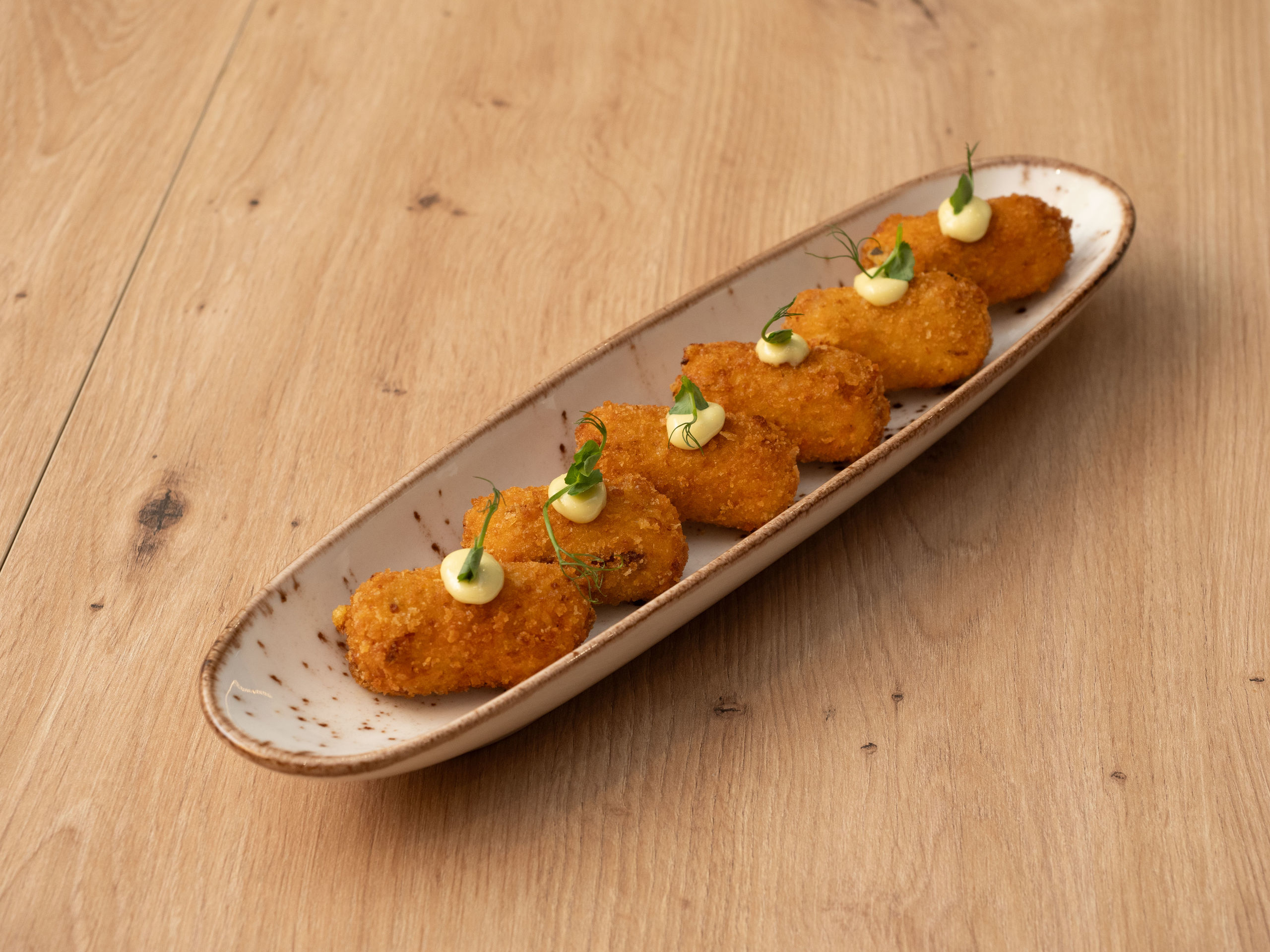 Algo más flojo quedó el taco de bacalao frito con mayonesa de chipotle, un poco de lombarda y cebolla encurtida y agucate. Y el pase que amplía el menú del corto al largo es el shrimp roll de gamba roja al ajillo coronado con huevas de salmón encerrado en un pan de brioche. De postre, un arroz con leche de coco estilo tai.