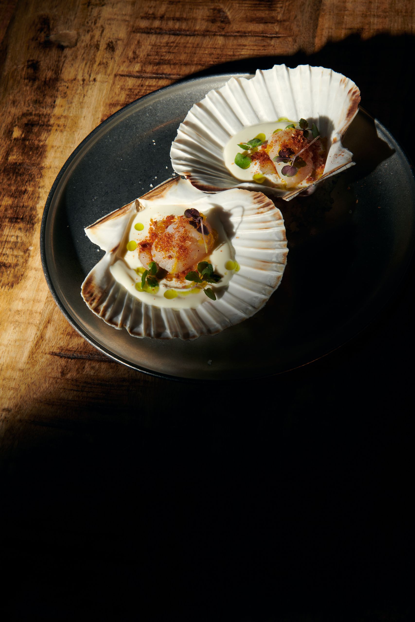 Espectacular vieira, leche de tigre de parmigiano y albahaca.