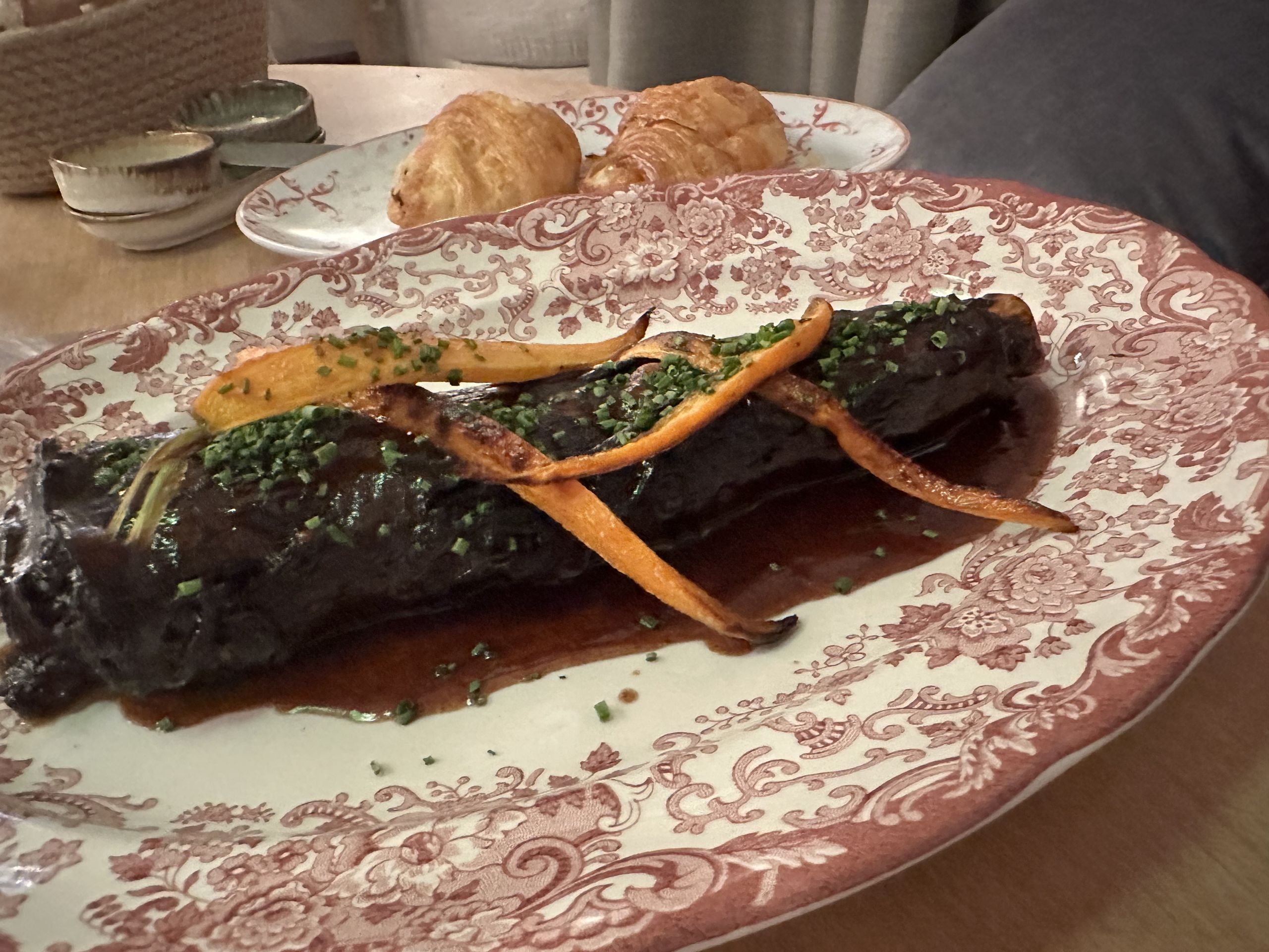 Rabo de vaca guisado despacio con "vino bueno", vadouvan o curry francés y cruasán.