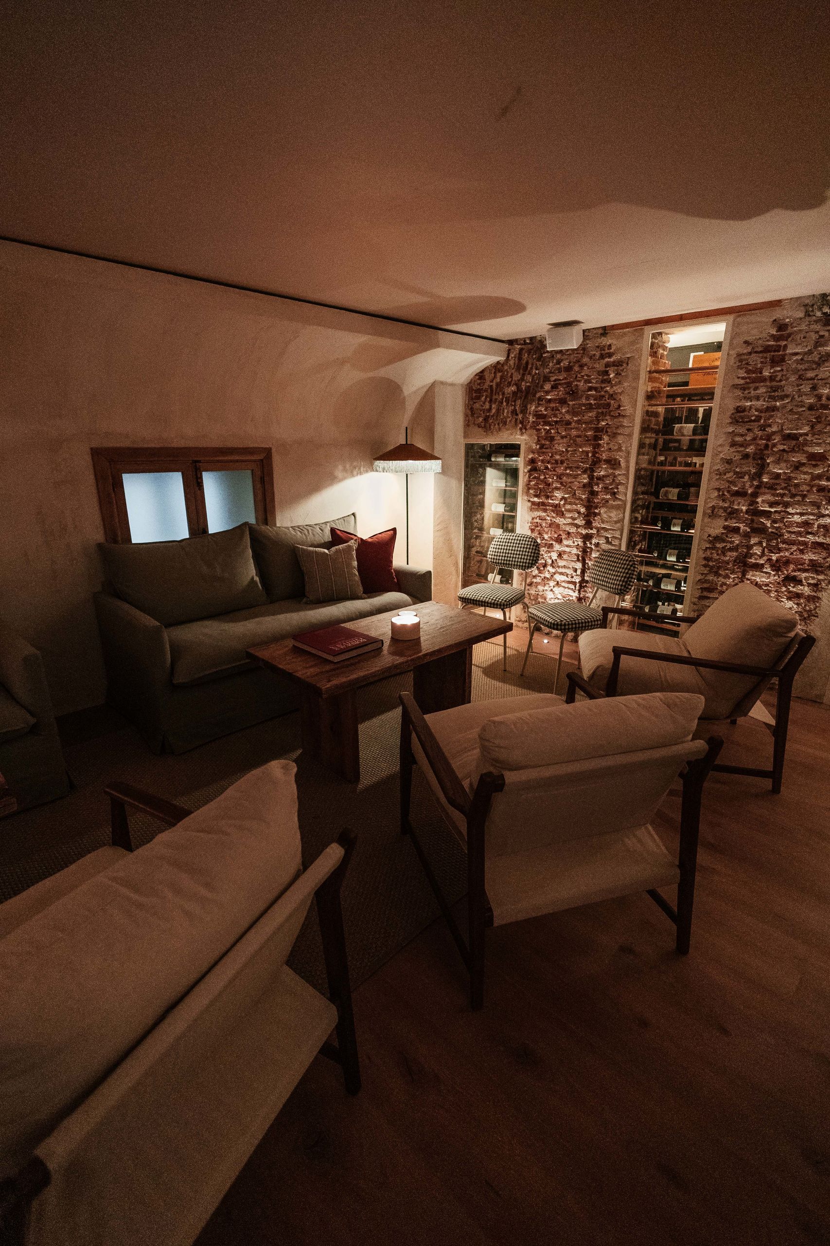 También cuenta con una zona de lunch con ambiente rodeado de sofás de lino, mesas baja de madera y butacas cómodas de diseño para cenas acogedoras.