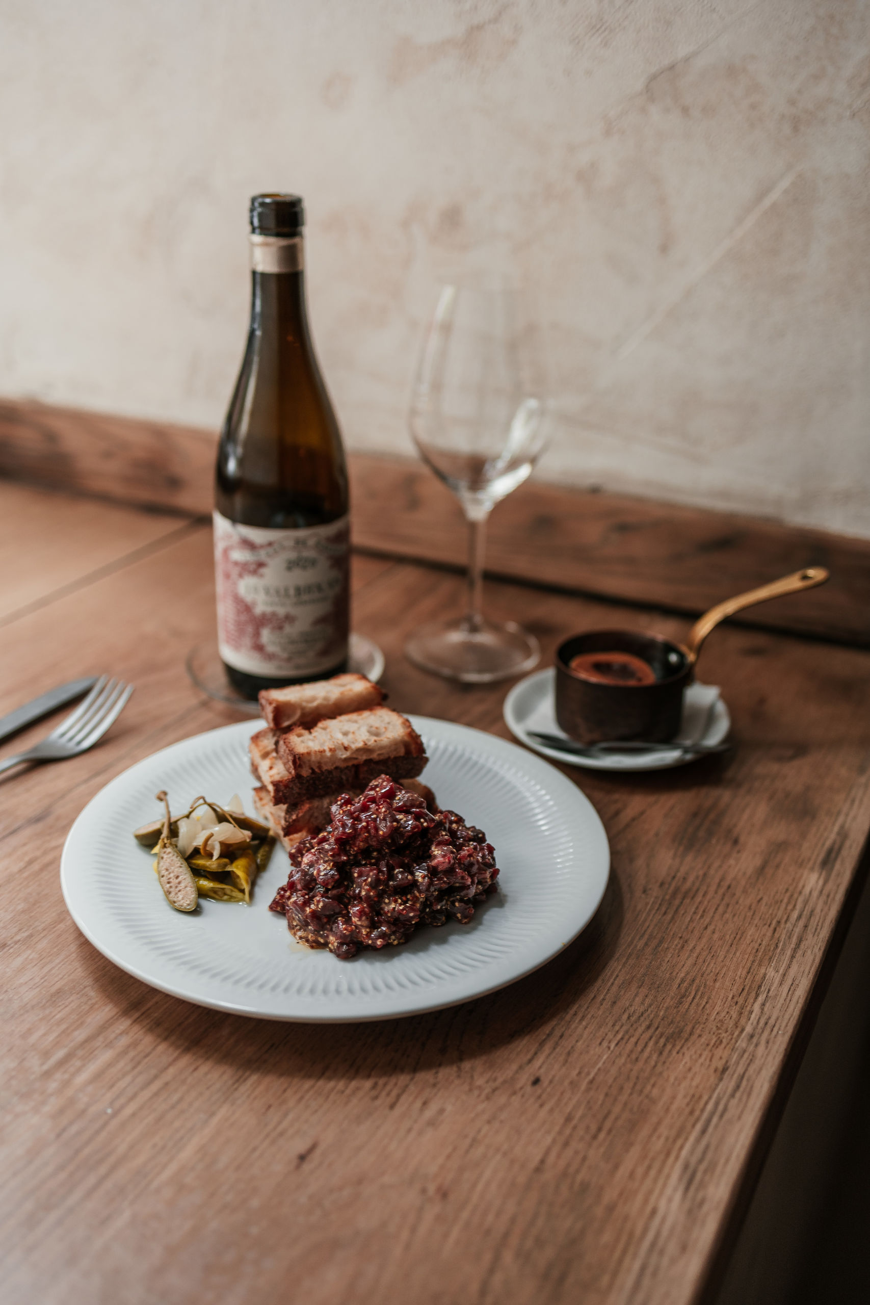 Steak tartar, una absoluta delicia al mezclarlo con el tuétano, jugo de carne y el vino de Jerez.
