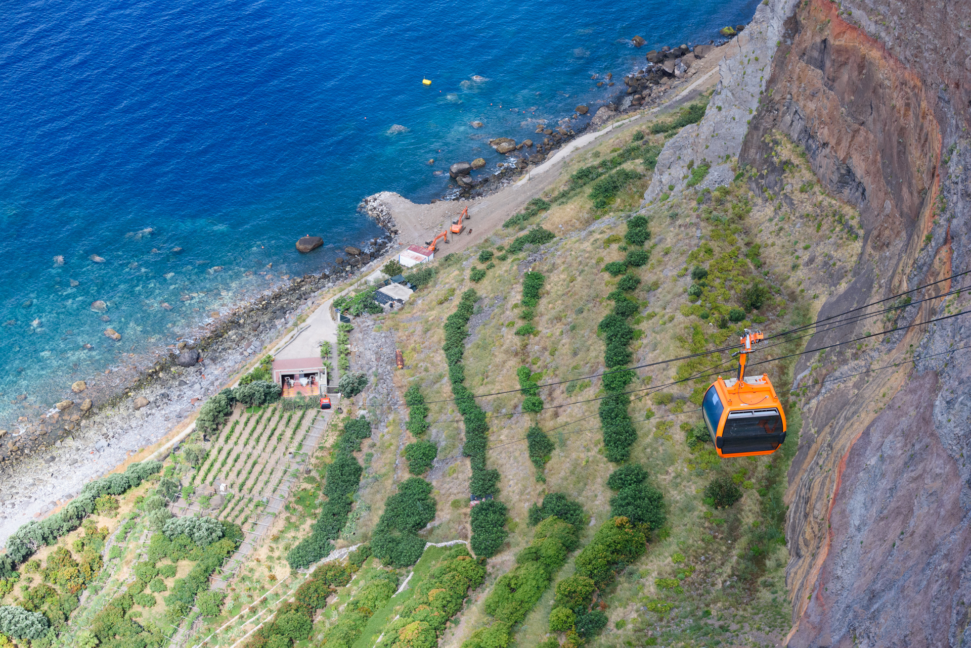 El teleférico del Cabo Girao (Teleferico do Rancho) lleva por unos impresionantes acantilados, y este es uno de los mejores lugares de Madeira para admirar las características volcánicas de sus paredes verticales.