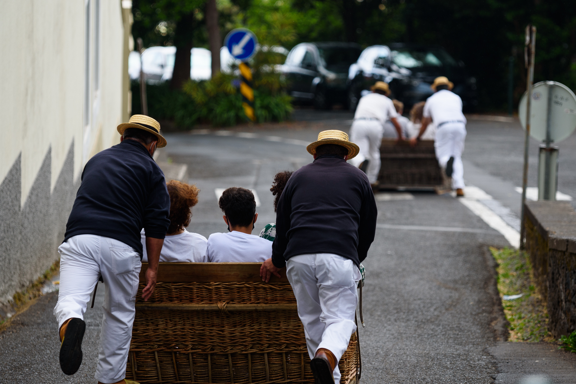 La peculiar bajada en cesta de mimbre en Monte. Este inusual medio de transporte se ha convertido en una de las atracciones turísticas más divertidas de la isla. Consiste en un descenso vertiginoso las calles desde Monte hasta Funchal.