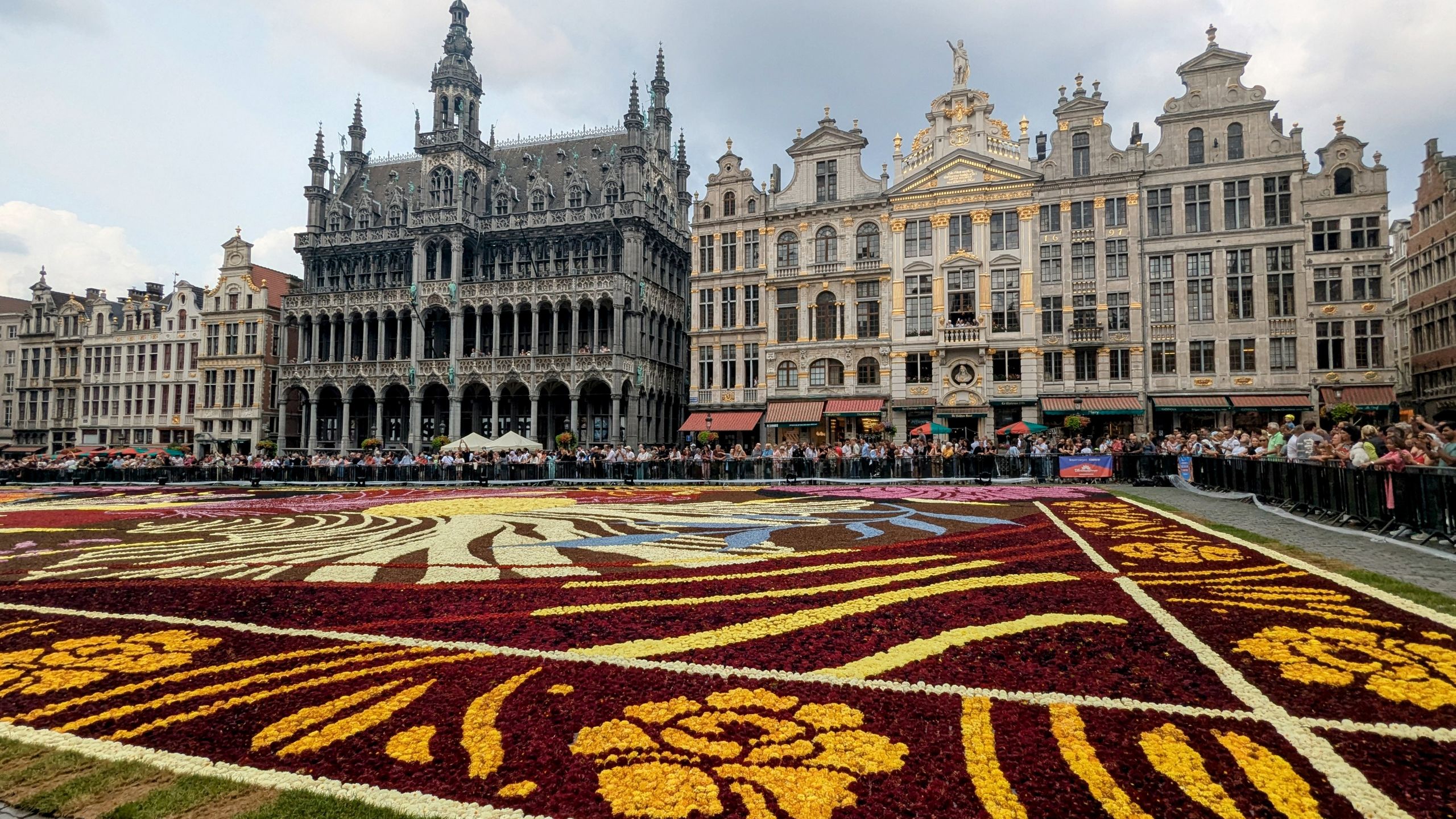 La Alfombra de flores es un espectáculo efímero que tiene lugar en la Grand Place de Bruselas cada dos años, coincidiendo con el fin de semana del 15 de agosto de los años pares.