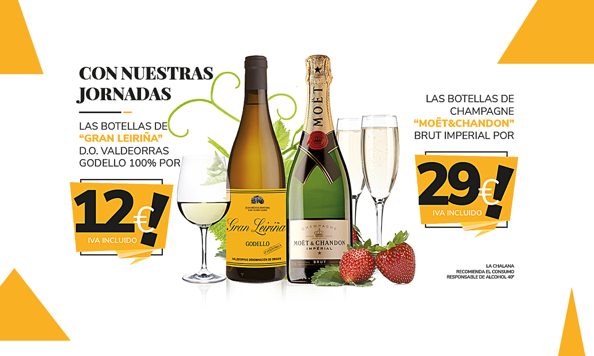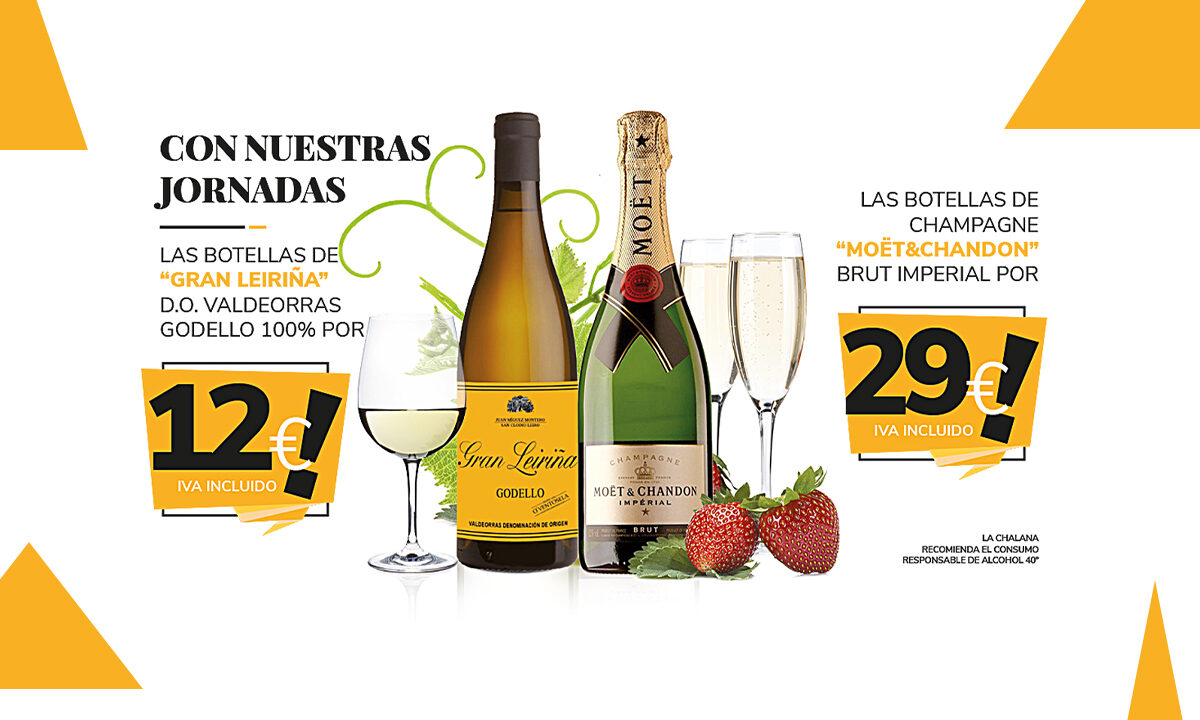 Y para completar la ocasión, puedes acompañar las jornadas con una botella de Champagne Moët&Chandon Brut Imperial por 29 euros. Este champagne de alta calidad se distingue por su fina burbuja y su aroma sofisticado a frutas blancas y flores. Su sabor fresco, equilibrado y elegante es el acompañamiento perfecto para resaltar aún más cada bocado.