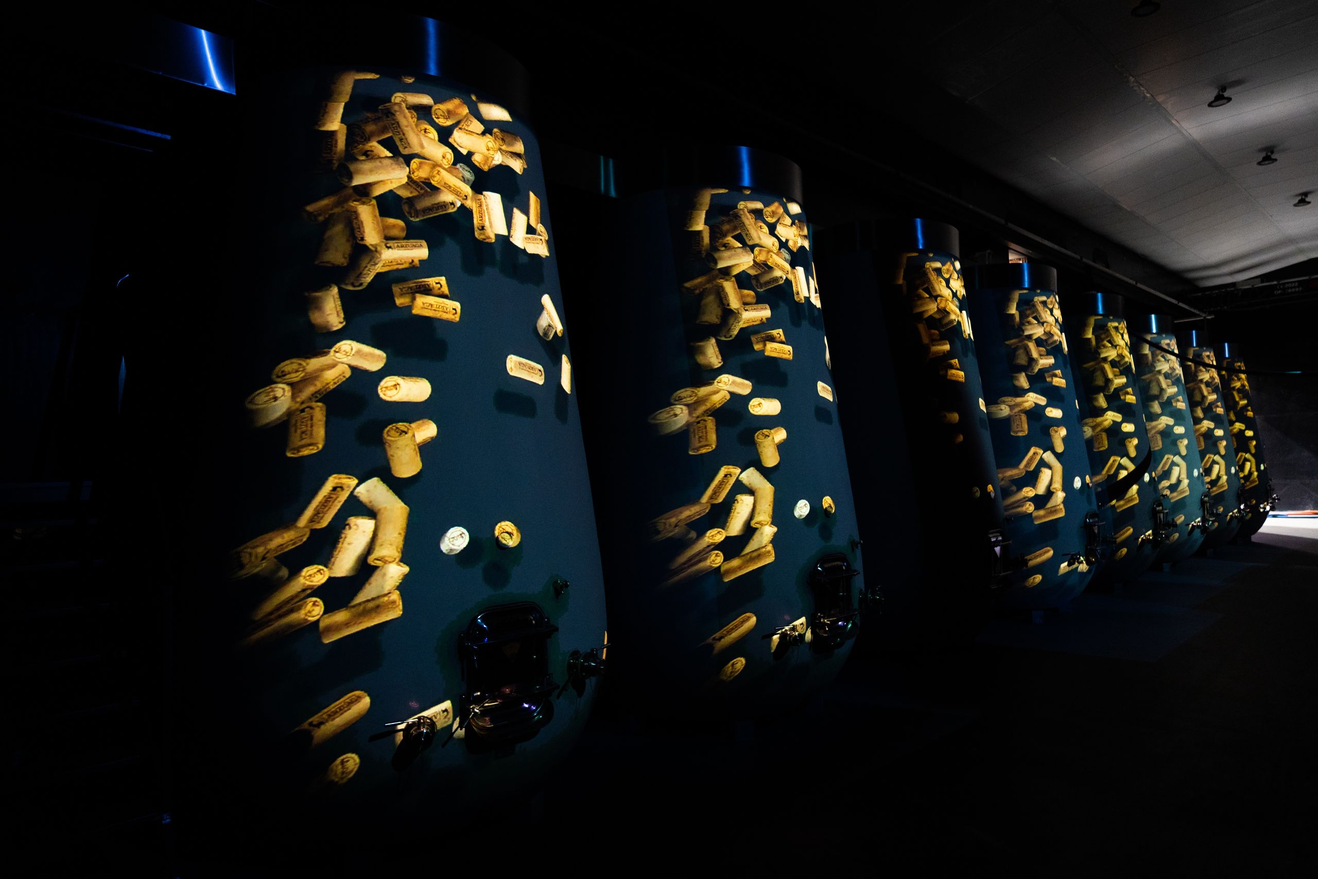 Durante la visita a las Bodegas Arzuaga podrás disfrutar de un espectáculo de luces y de sonido sobre las barricas de hormigón que sorprenderá al público.