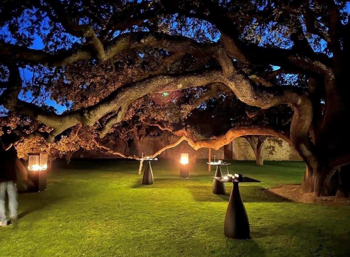 La vista nocturna de la encina milenaria es aún más espectacular si cabe.