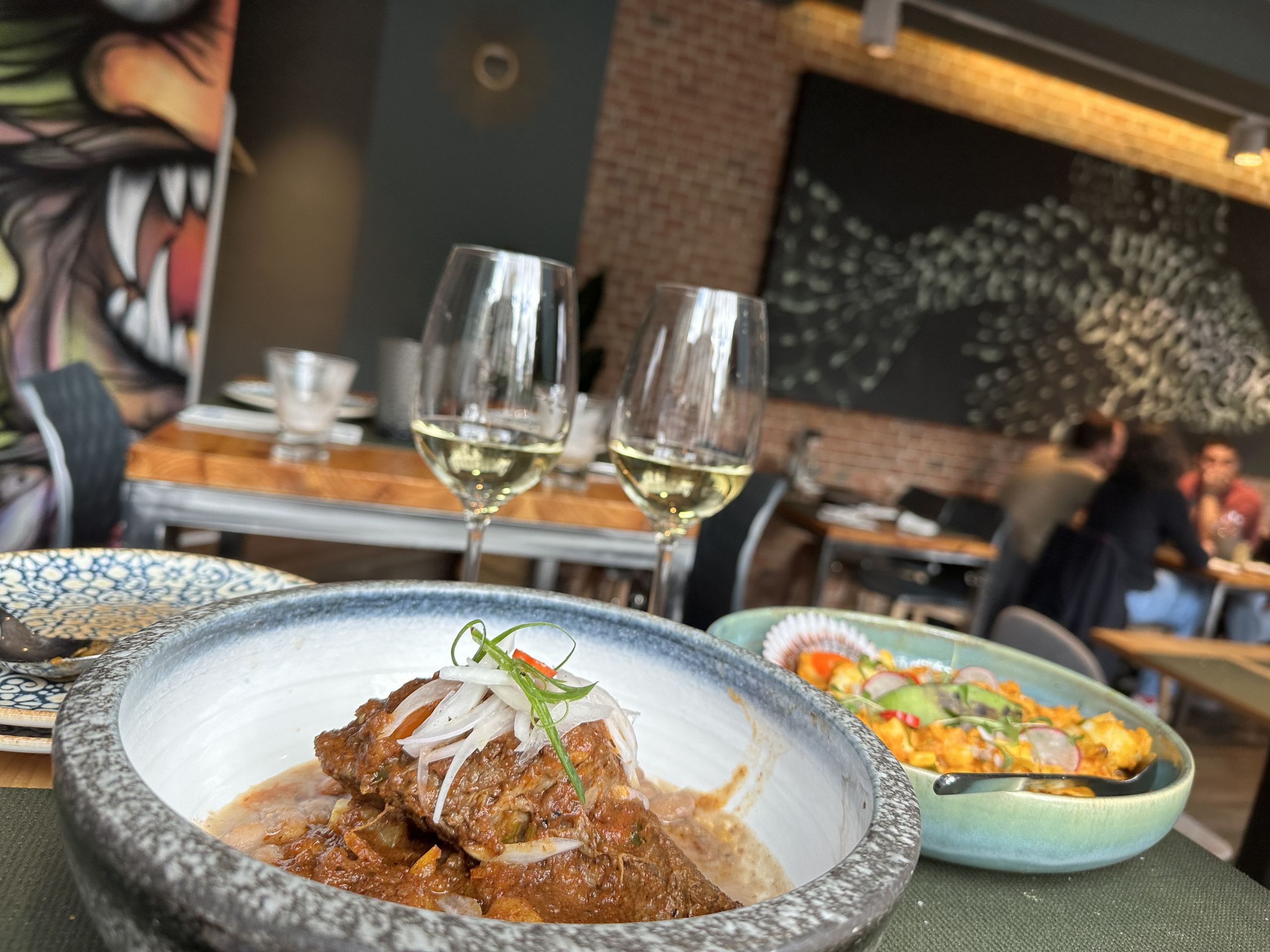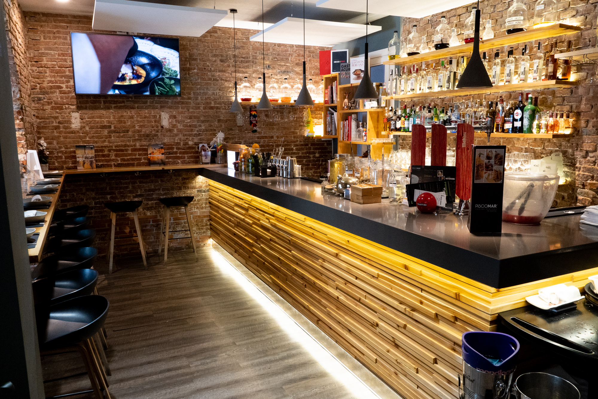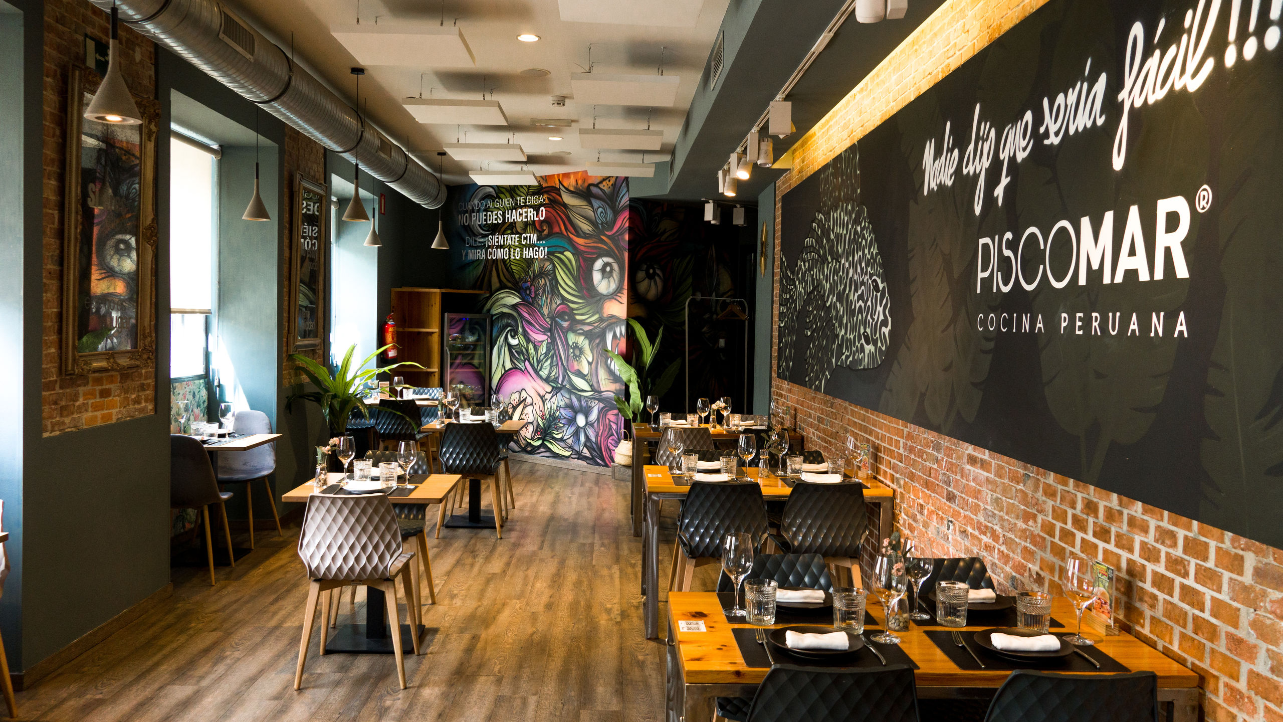 El local es amplio y luminoso, decorado con vistosos y coloridos murales que saben a tradición peruana, mesas bajas y altas para todos los gustos.