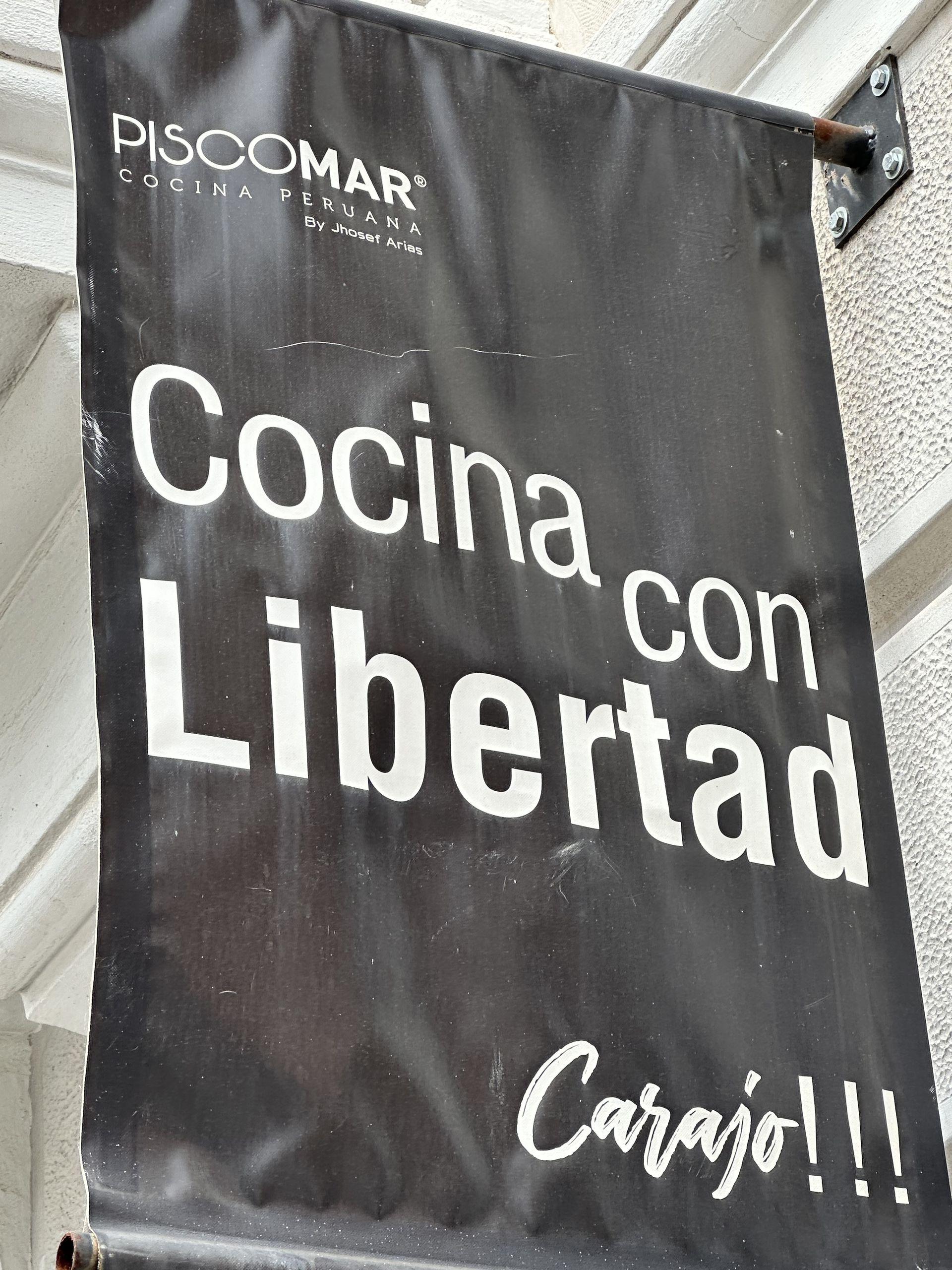 Cocina con Libertad, carajo!!! Así reza en la puerta de Piscomar, toda una declaración de intenciones.