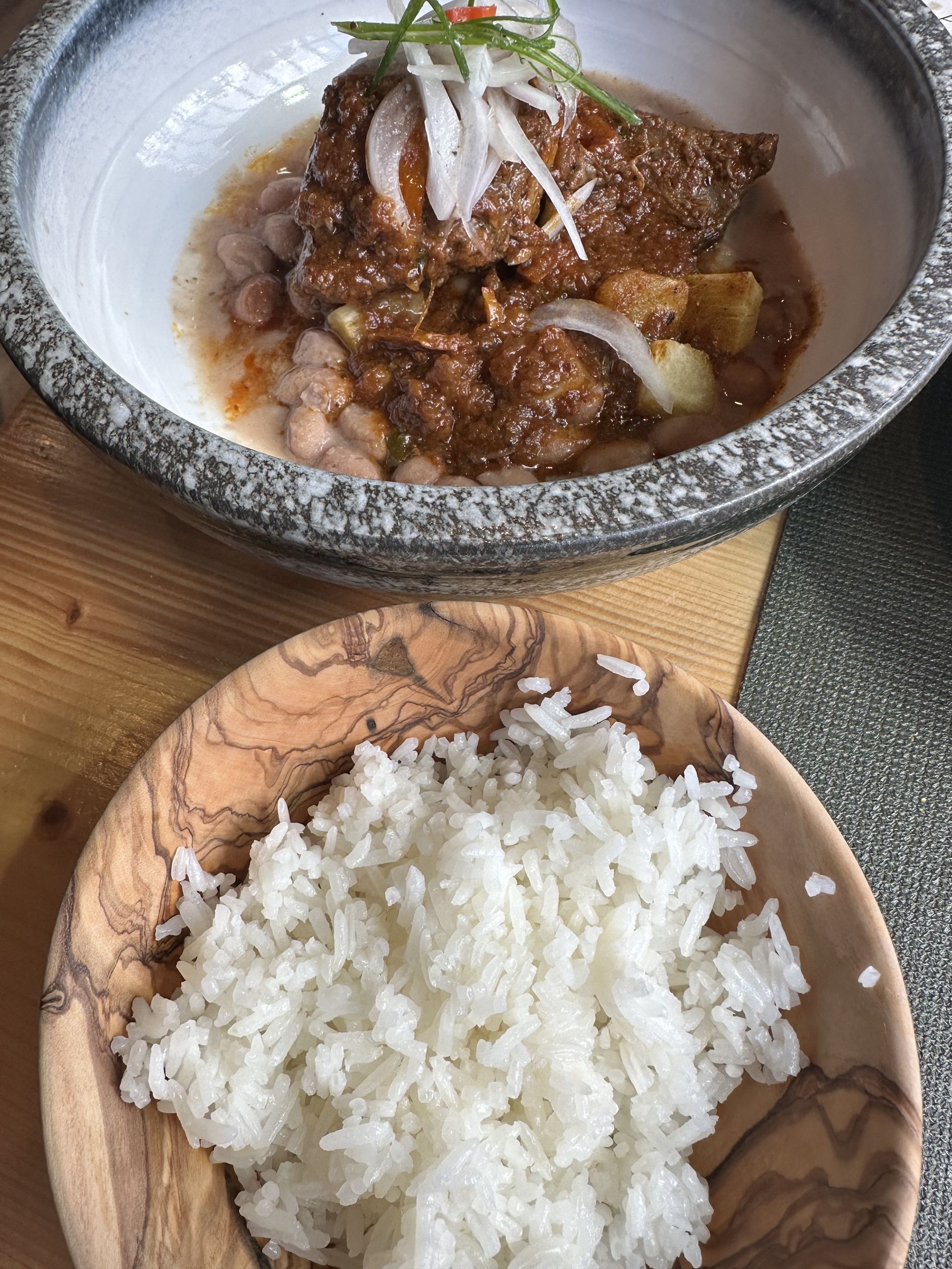 Seco norteña, una cadera cocinada durante dos horas, con cilantro, chicha de jora y un poco de cerveza rubia, como base le ponen frijoles blancos y la acompañan con sarsa criolla y arroz blanco.