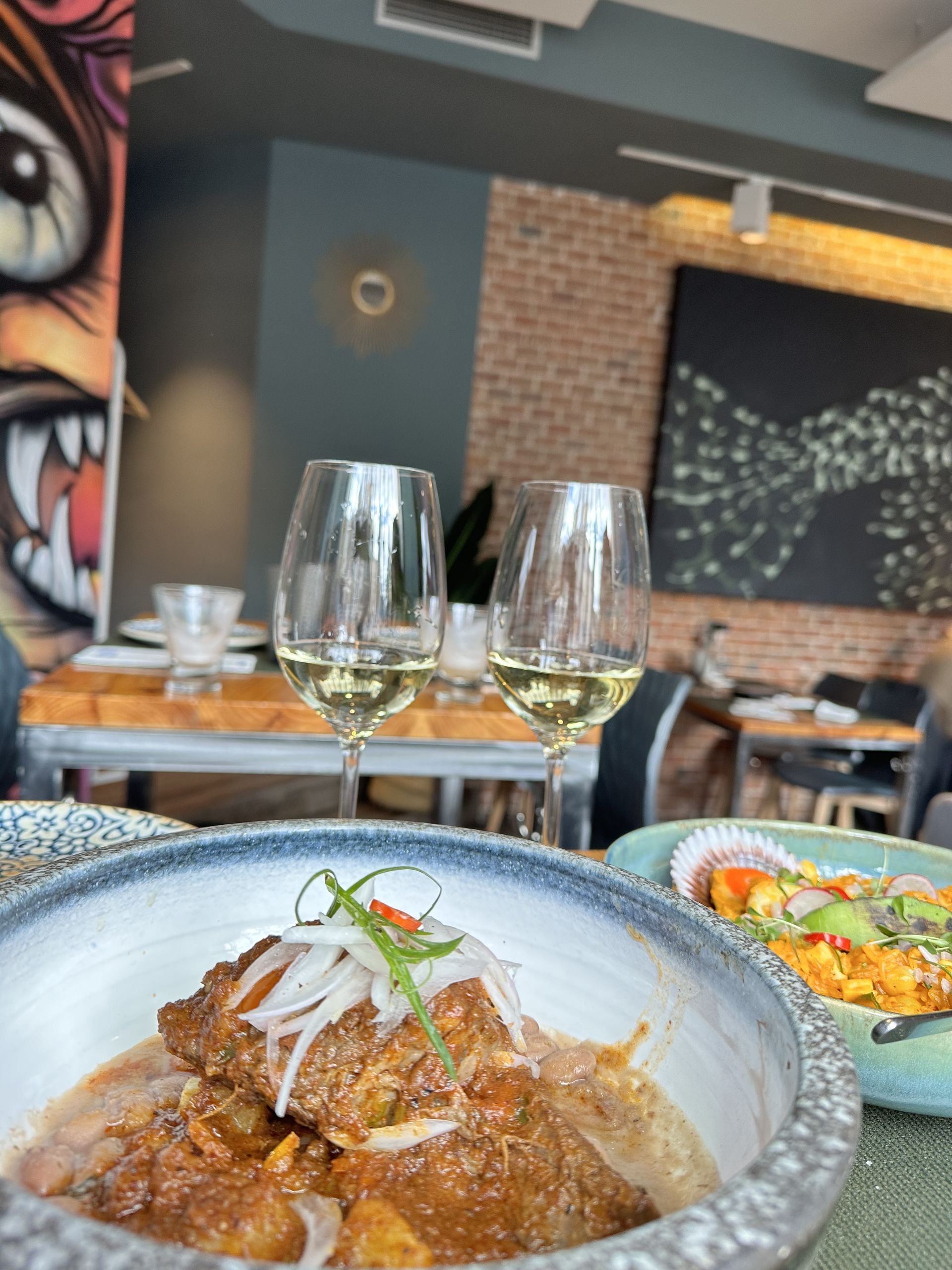 La carta de vinos no es muy extensa pero vas a encontrar alguna referencia que sea de tu agrado. Nosotros elegimos un vino blanco Habla de ti (21€) para seguir saboreando el Perú más auténtico. El atento servicio de Piscomar nos sirvió el acertado plato seco norteña (19,5€), una cadera cocinada durante dos horas, con cilantro, chicha de jora y un poco de cerveza rubia, como base le ponen frijoles blancos y la acompañan con salsa criolla y arroz blanco.