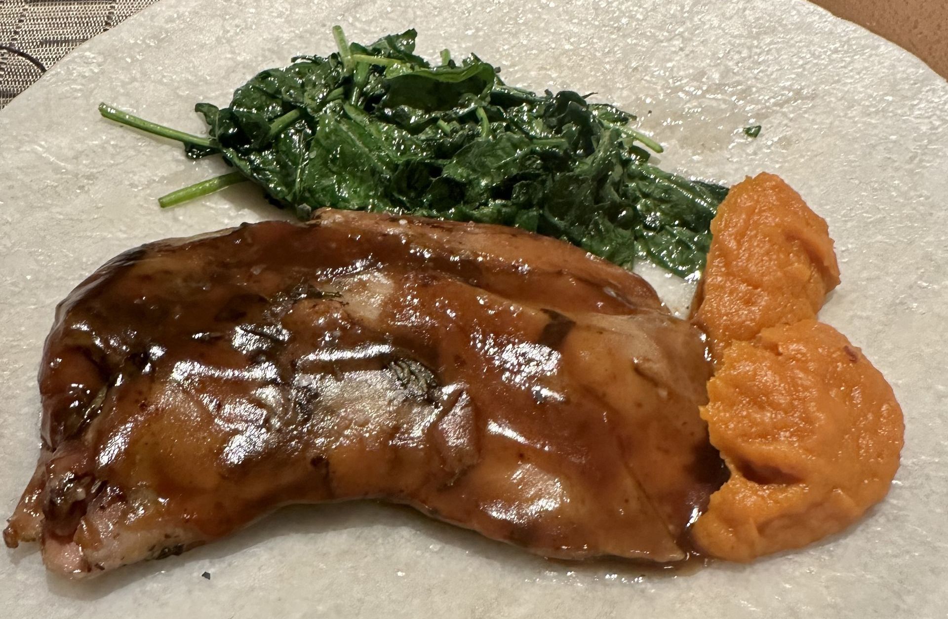 Seguimos con un muy buen rodaballo asado, acompañado de patatas baby y mantequilla cítrica (28€). Una opción perfecta para dar paso a la magnífica paletilla de cordero lechal al romero, con crema de boniato y espinacas (29€). Un plato que aunque pueda parecer pesado para la cena no fue así y es perfecto para compartir. Eso sí, suavizamos el paladar con una refrescante crema de limón, lichis y helado de coco (9€).