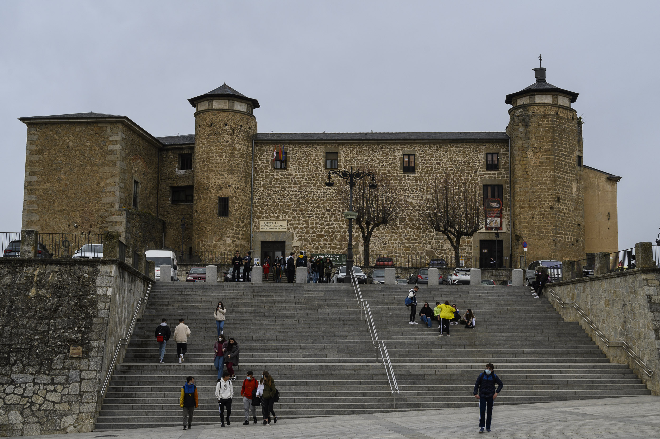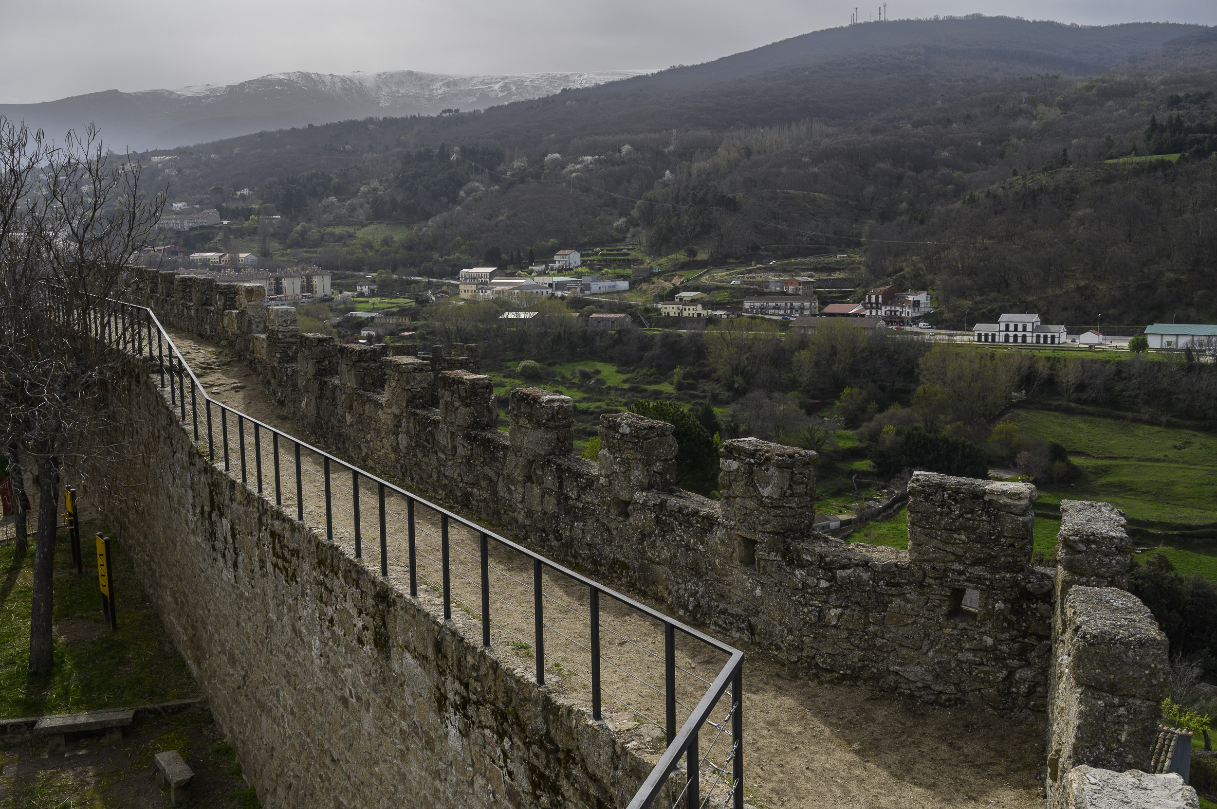 La muralla de Béjar y la estación de esquí de la Covatilla al fondo.